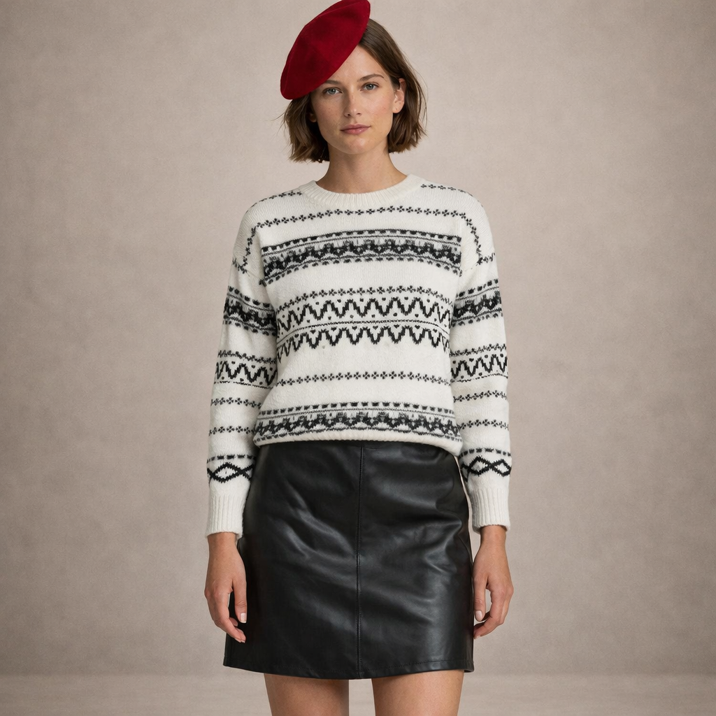 Women’s Crew Neck Knit Sweater with Graphic Pattern
