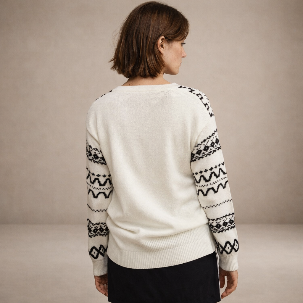 This graphic knit jumper offers a cosy yet modern look with a timeless pattern that feels effortlessly wearable. Designed for everyday comfort, it is ideal for casual outings, layering through the seasons or relaxed at-home styling.