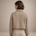Polished and contemporary, this women’s beige cropped jacket offers a refined layer for transitional dressing. The structured silhouette and soft neutral tone create a clean, modern look that pairs effortlessly with denim or tailored trousers. Ideal for both weekday styling and weekend outings, it delivers understated elegance with ease.
