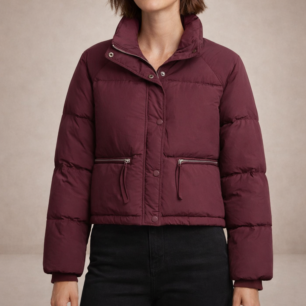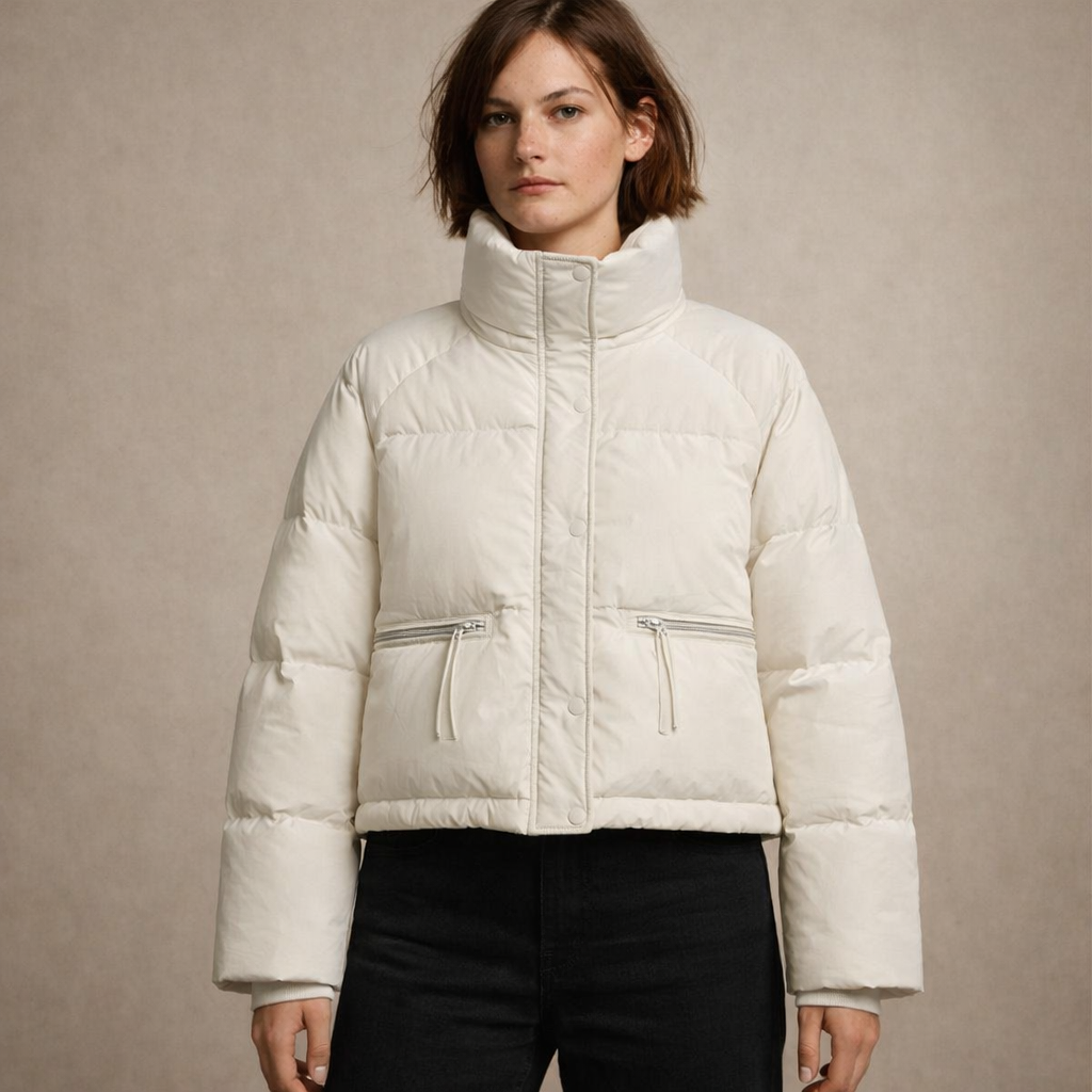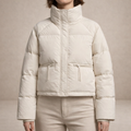 Key features of this Women’s Cropped Beige Puffer Jacket
