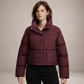 Design: Contemporary cropped silhouette with a high stand collar for a sleek, streamlined look