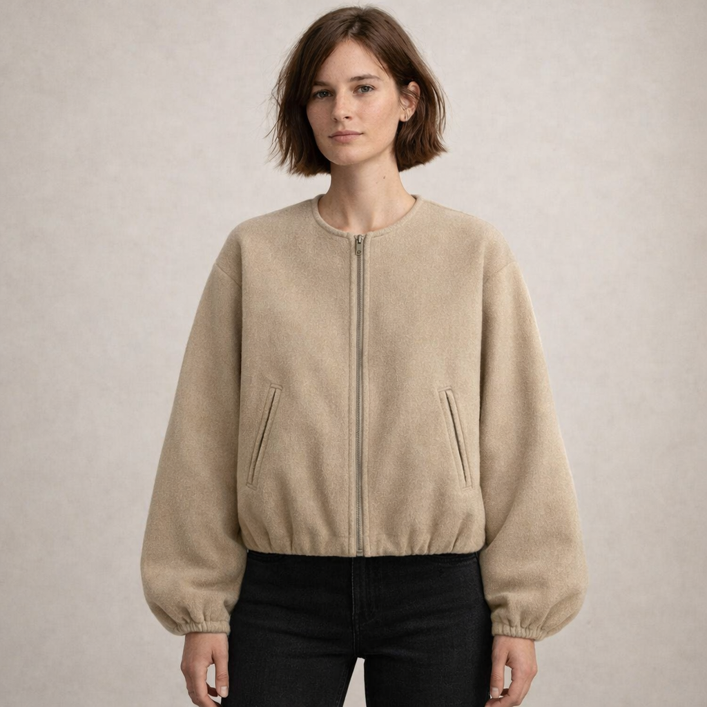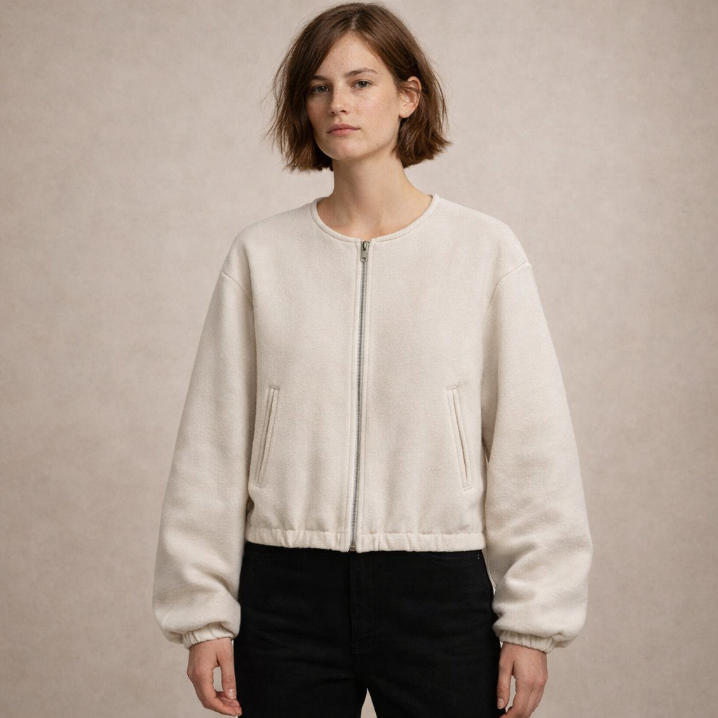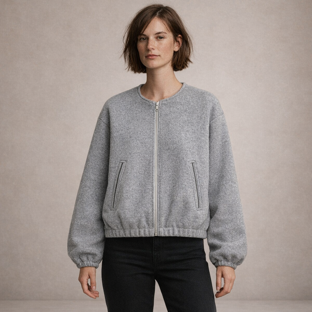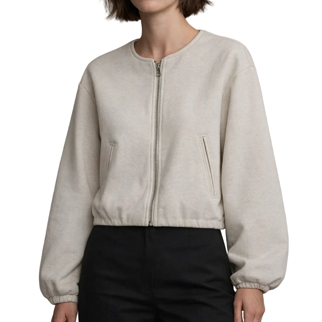 Clean, contemporary and effortlessly versatile, this Women’s Cropped Zip-Front Jacket is a refined layering piece for transitional dressing. With its minimalist silhouette and soft texture, it offers understated style that pairs seamlessly with both tailored and casual looks.