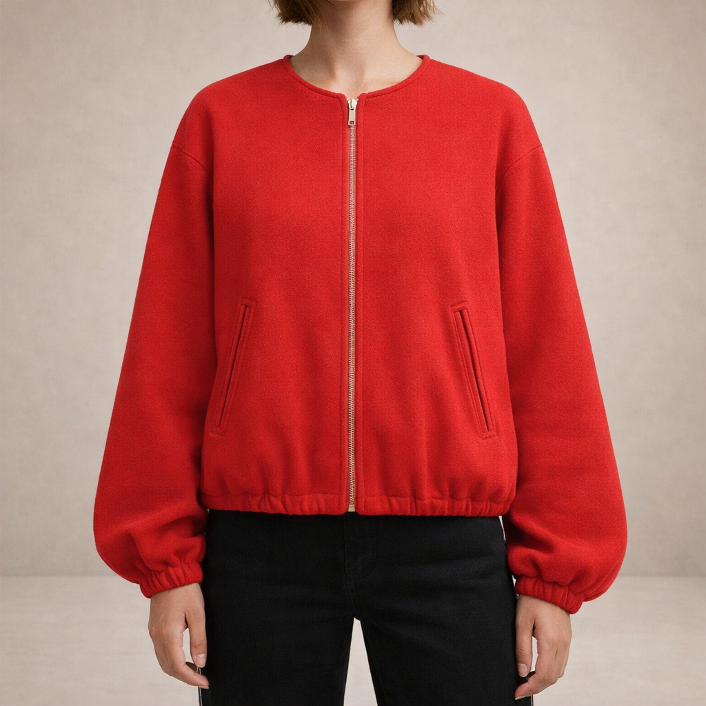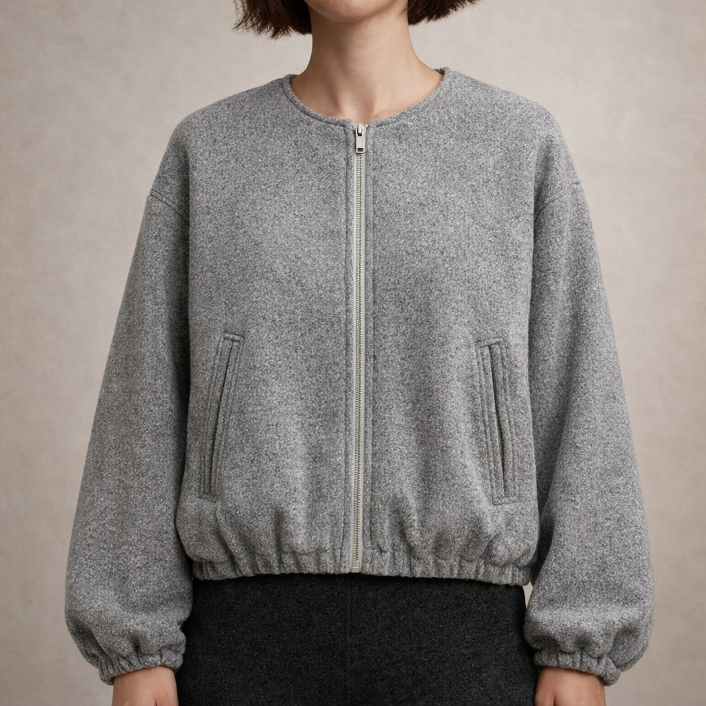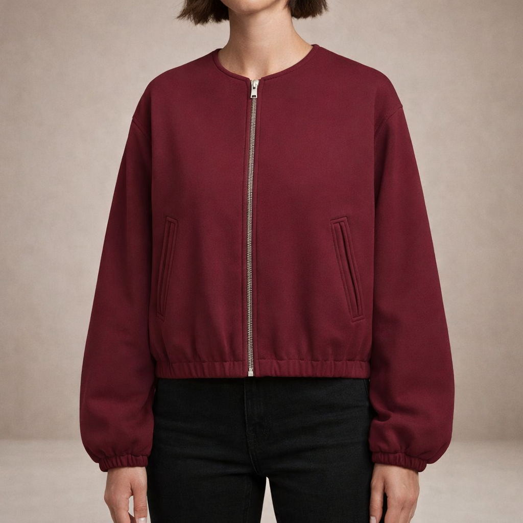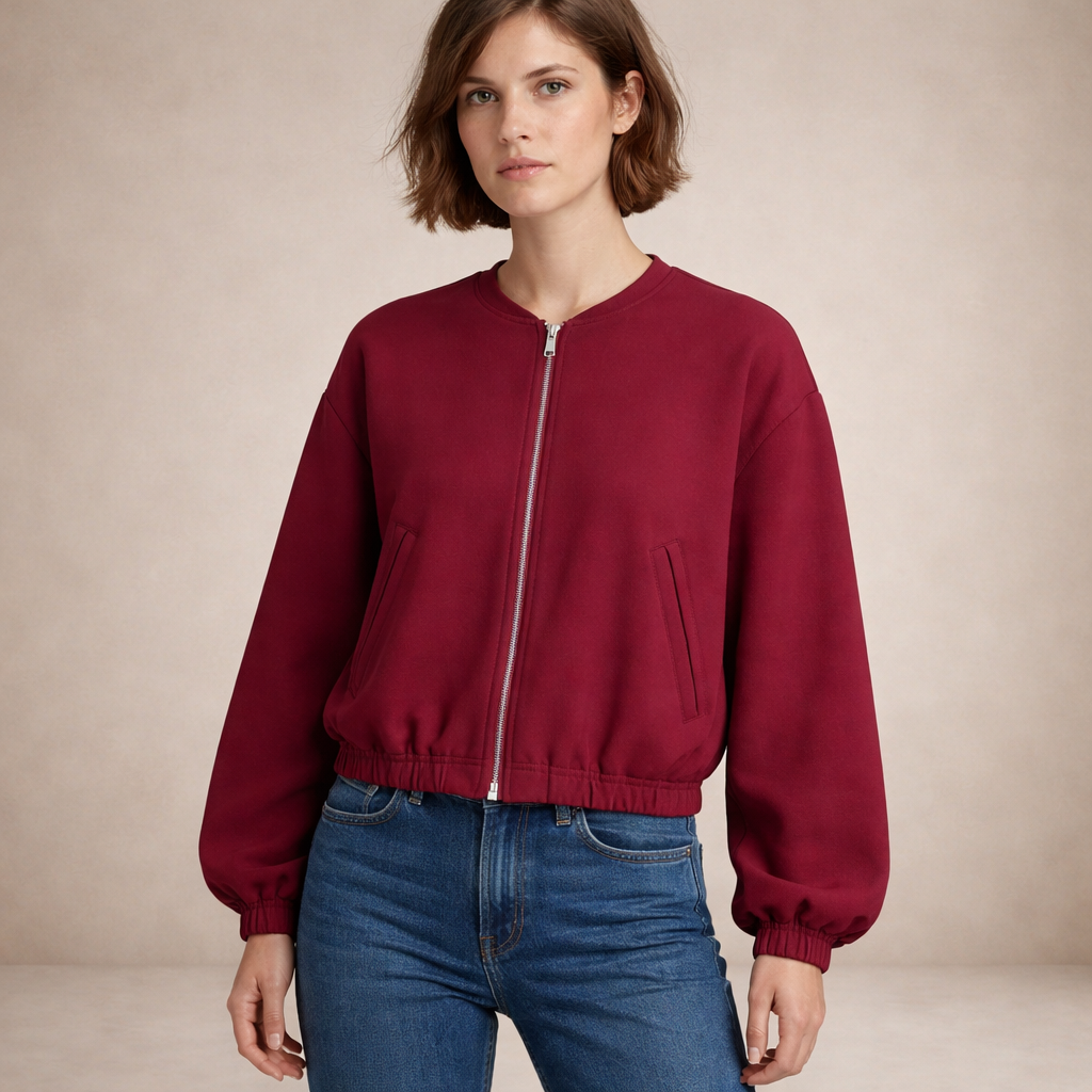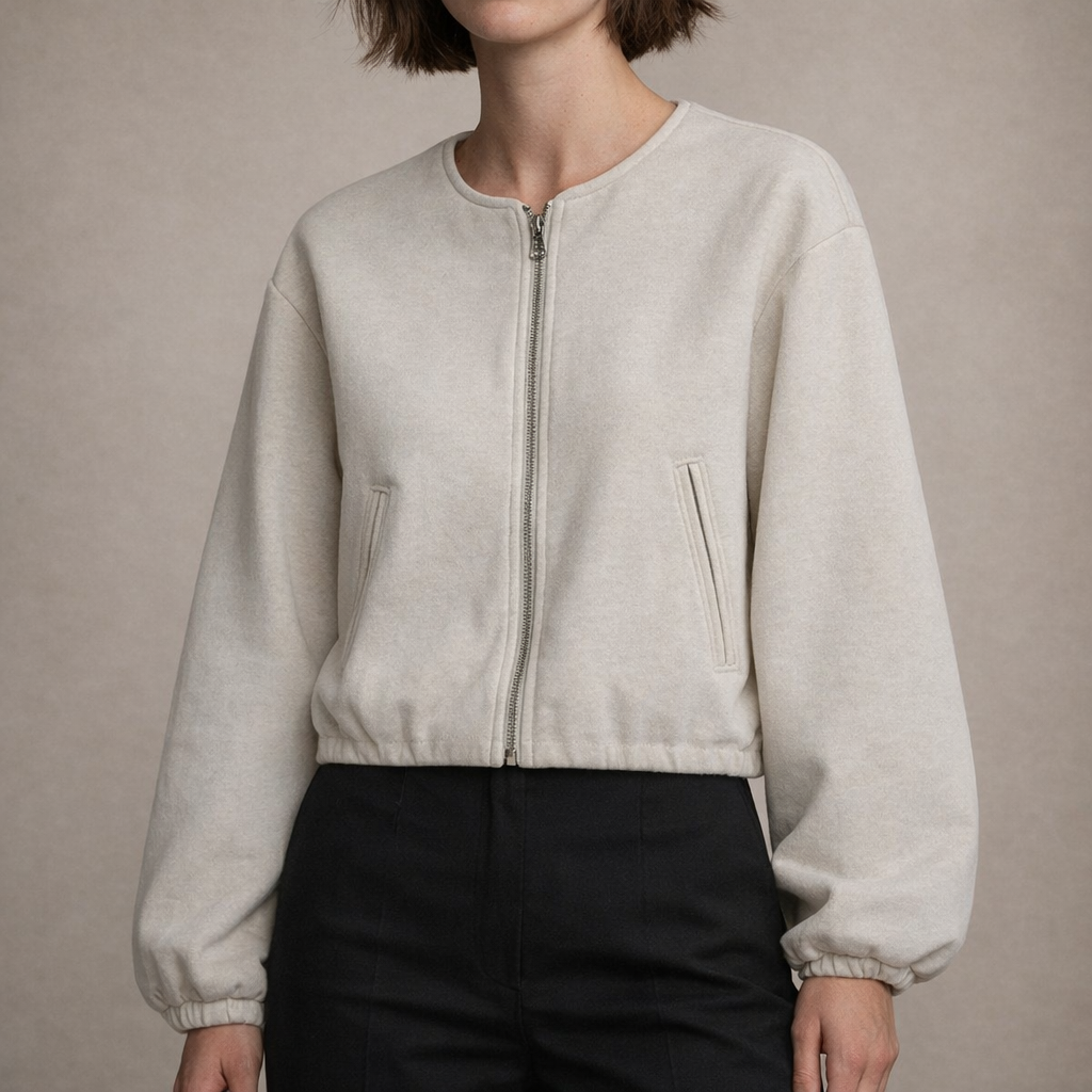 Women’s Cropped Zip-Up Jacket with Elastic Hem