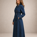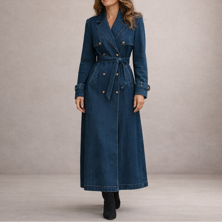 Women’s Denim Double-Breasted Trench Coat with Belt