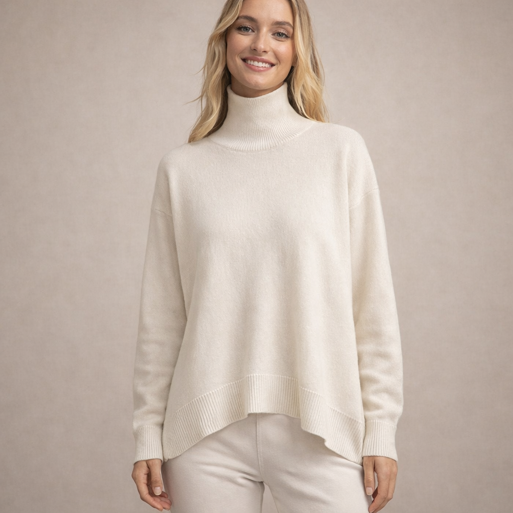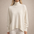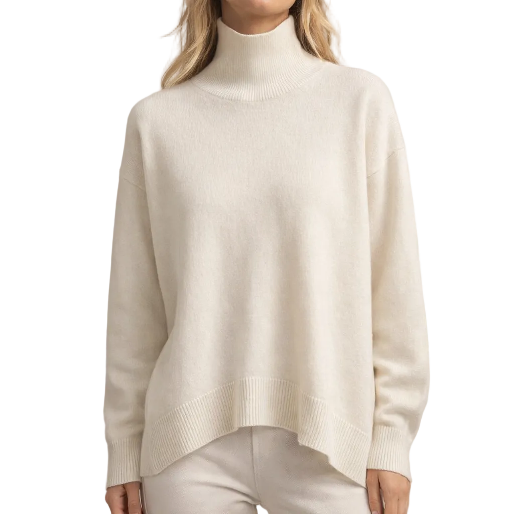 Design: A minimalist silhouette with a classic roll neck and subtle dropped shoulders for a modern, understated look.