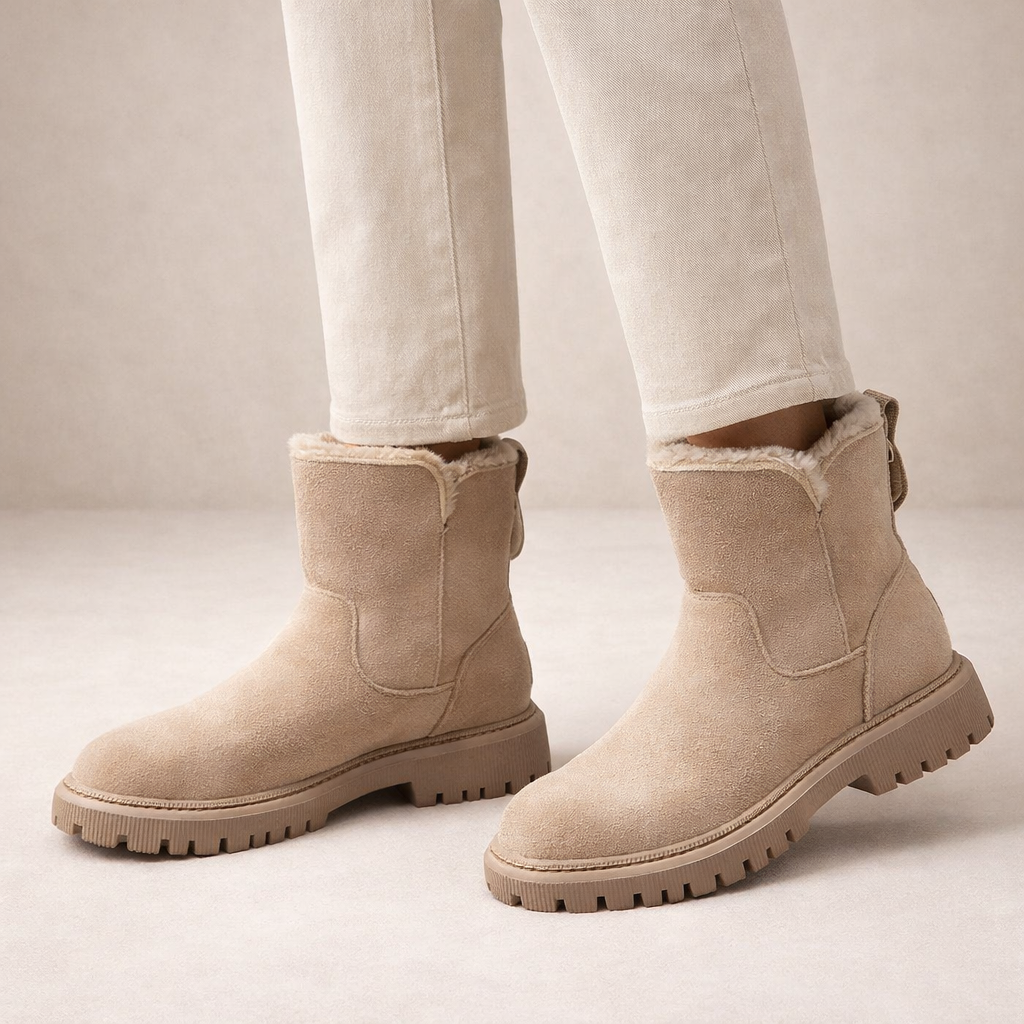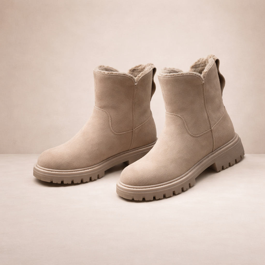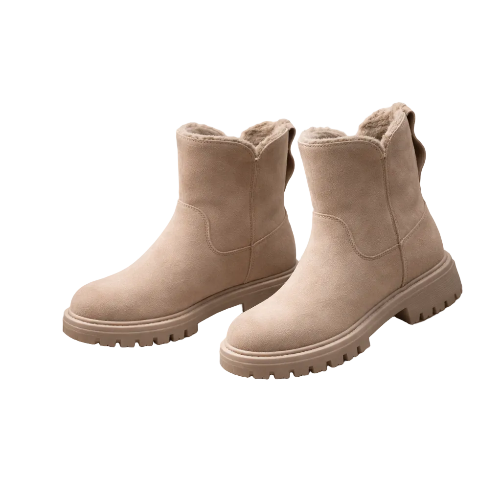 Designed for cold-weather comfort with a clean, contemporary finish, these Women’s Faux Suede Ankle Snow Boots combine practicality with understated style. The soft neutral tone makes them easy to pair with winter layers, from slim denim to knitted dresses. Ideal for everyday wear, they offer warmth and support throughout the season.