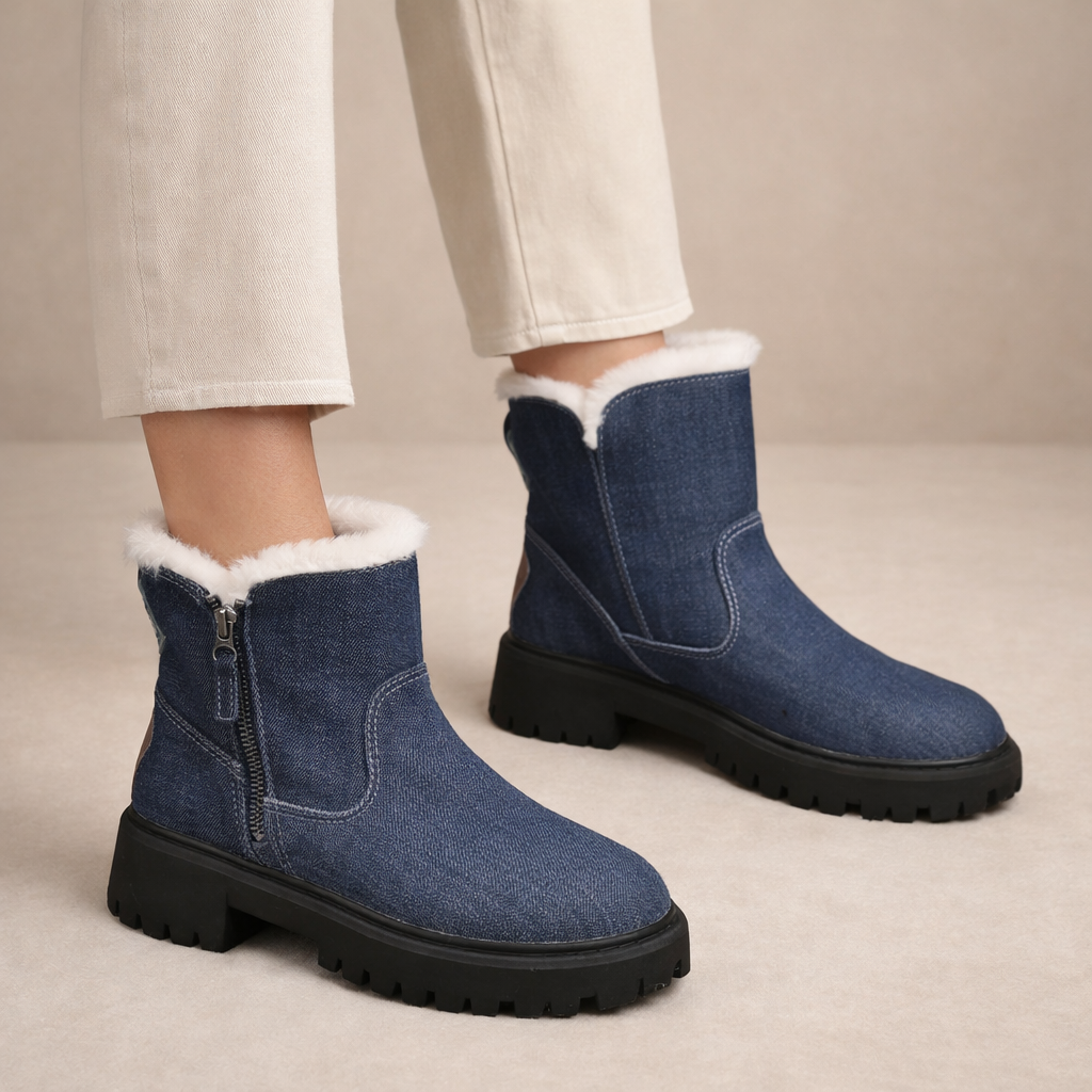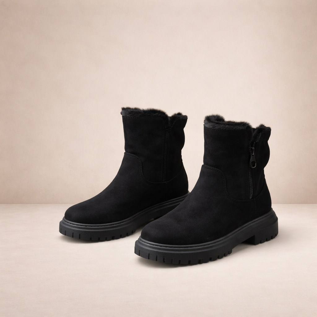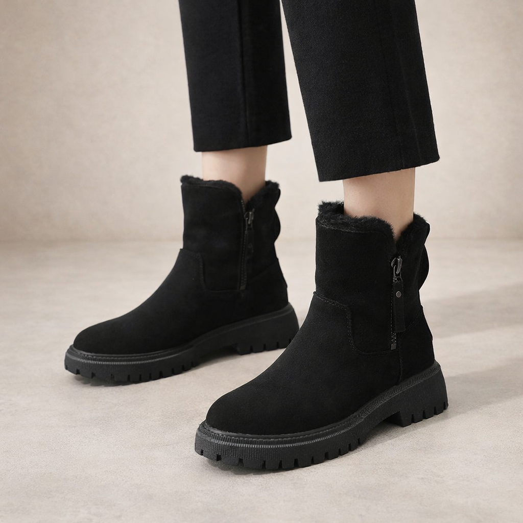 Designed for cold-weather comfort with a clean, contemporary finish, these Women’s Faux Suede Ankle Snow Boots combine practicality with understated style. The soft neutral tone makes them easy to pair with winter layers, from slim denim to knitted dresses. Ideal for everyday wear, they offer warmth and support throughout the season.