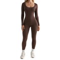 Sleek, sculpted and effortlessly modern, this Women’s Fitted Long Sleeve Scoop Neck Jumpsuit creates a streamlined silhouette with minimal effort. The clean lines and rich brown tone make it ideal for day-to-night styling, from relaxed weekends to elevated casual outings. Worn alone or layered, it delivers a confident, contemporary look.