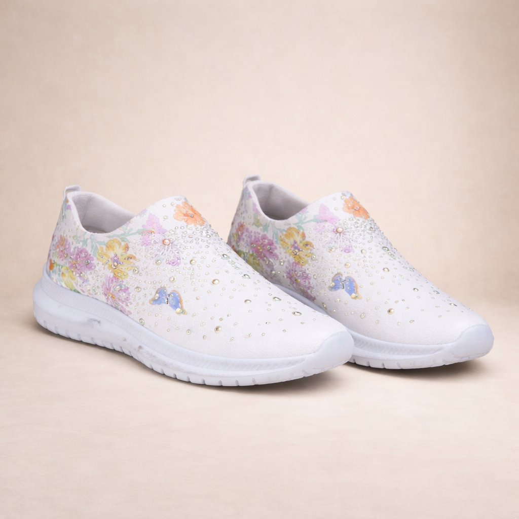 Women’s Floral Print Slip-On Trainers with Cushioned Sole