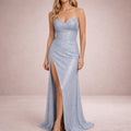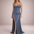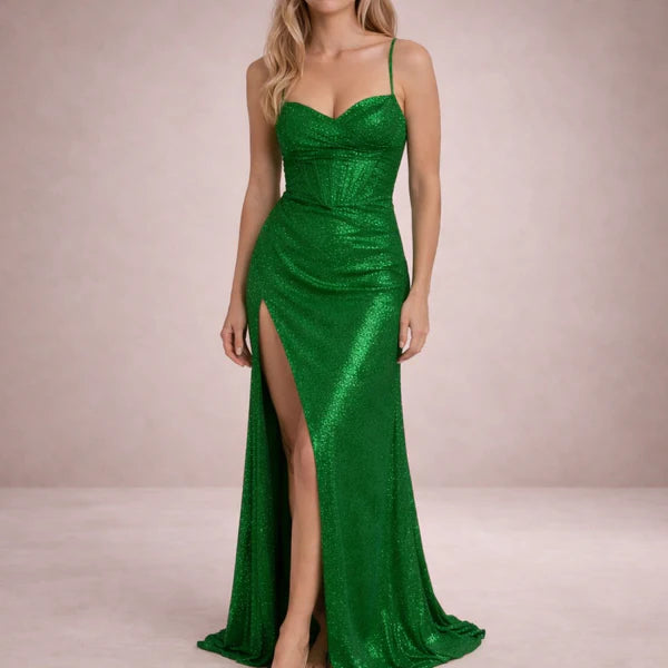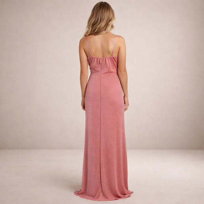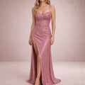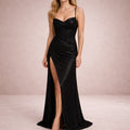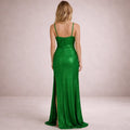Women’s Glitter Maxi Dress with Spaghetti Straps and Thigh Split