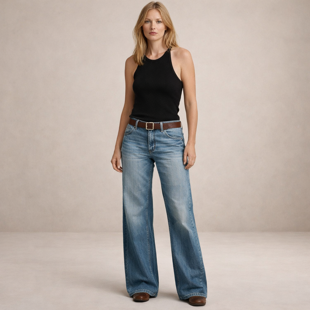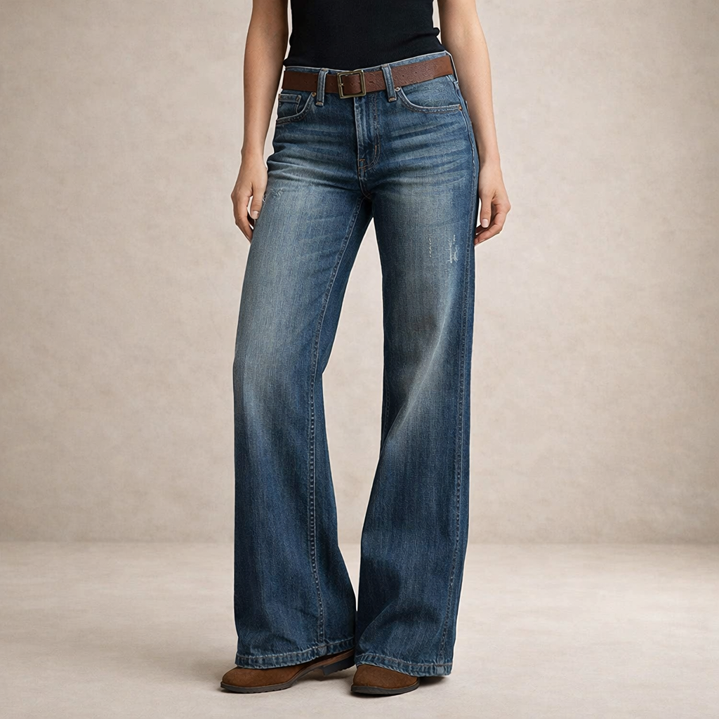 Women’s High-Waisted Wide Leg Jeans with Vintage Wash