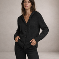 Fit: Comfortable, easy fit that drapes naturally over the body, allowing for light layering while maintaining a flattering outline.