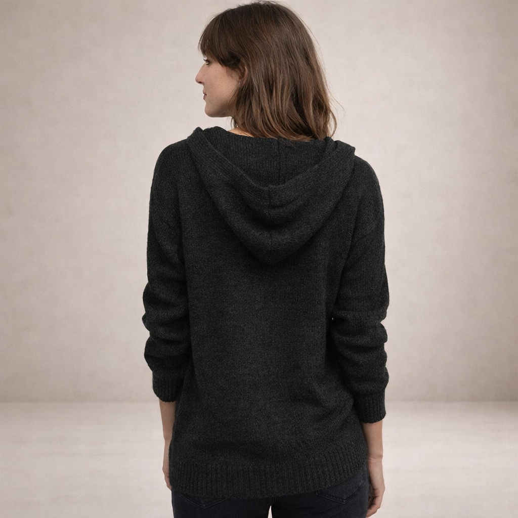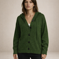 Design: Classic longline cardigan shape with a practical hood and full button-front fastening for a timeless yet relaxed appearance.