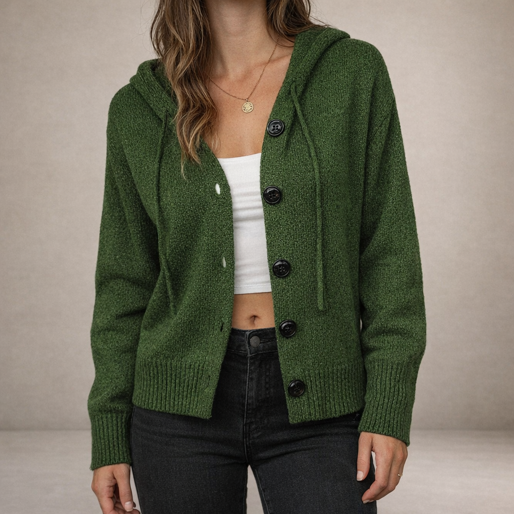 Key features of this Women’s Hooded Button-Front Knit Cardigan