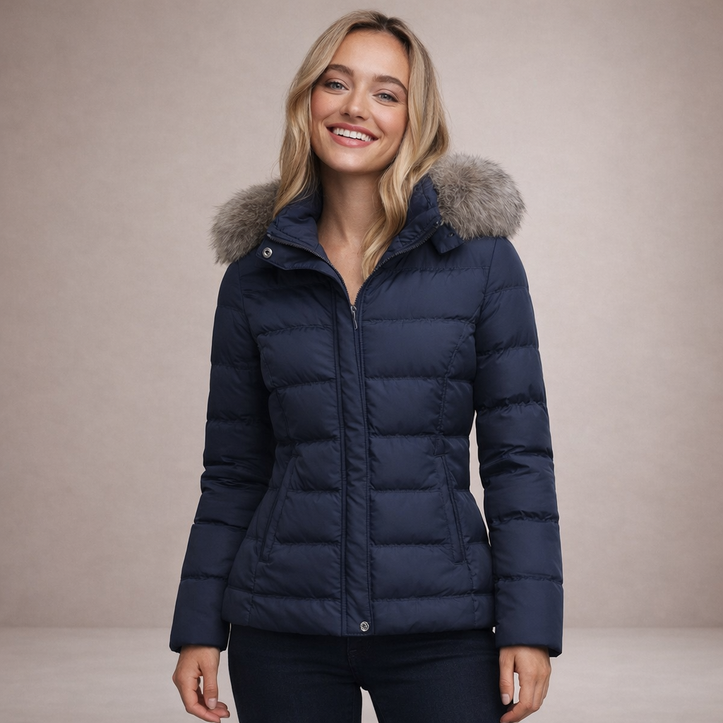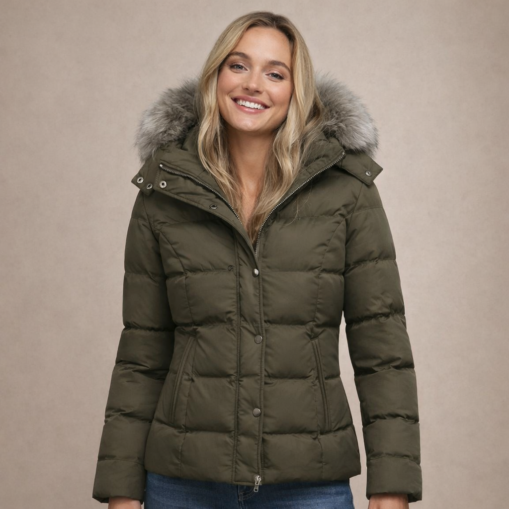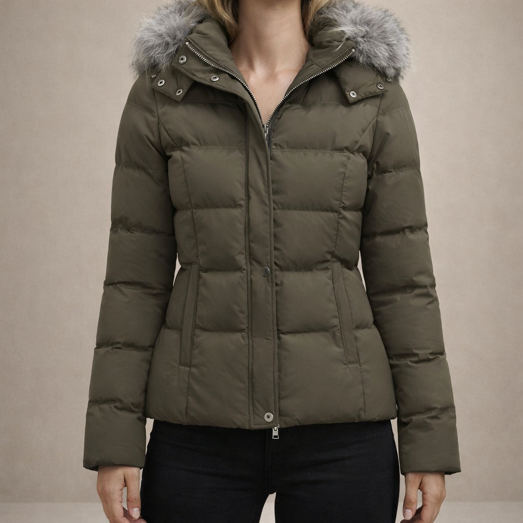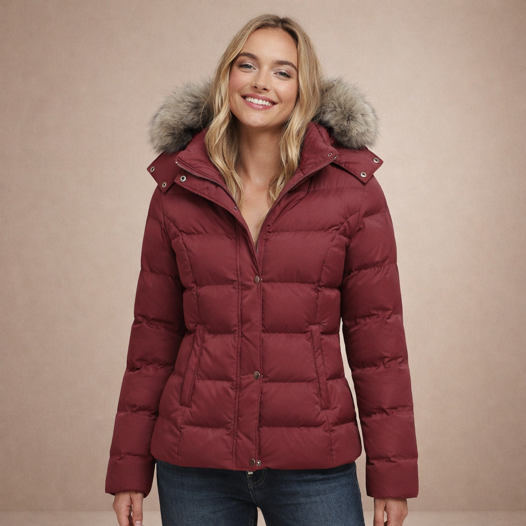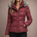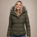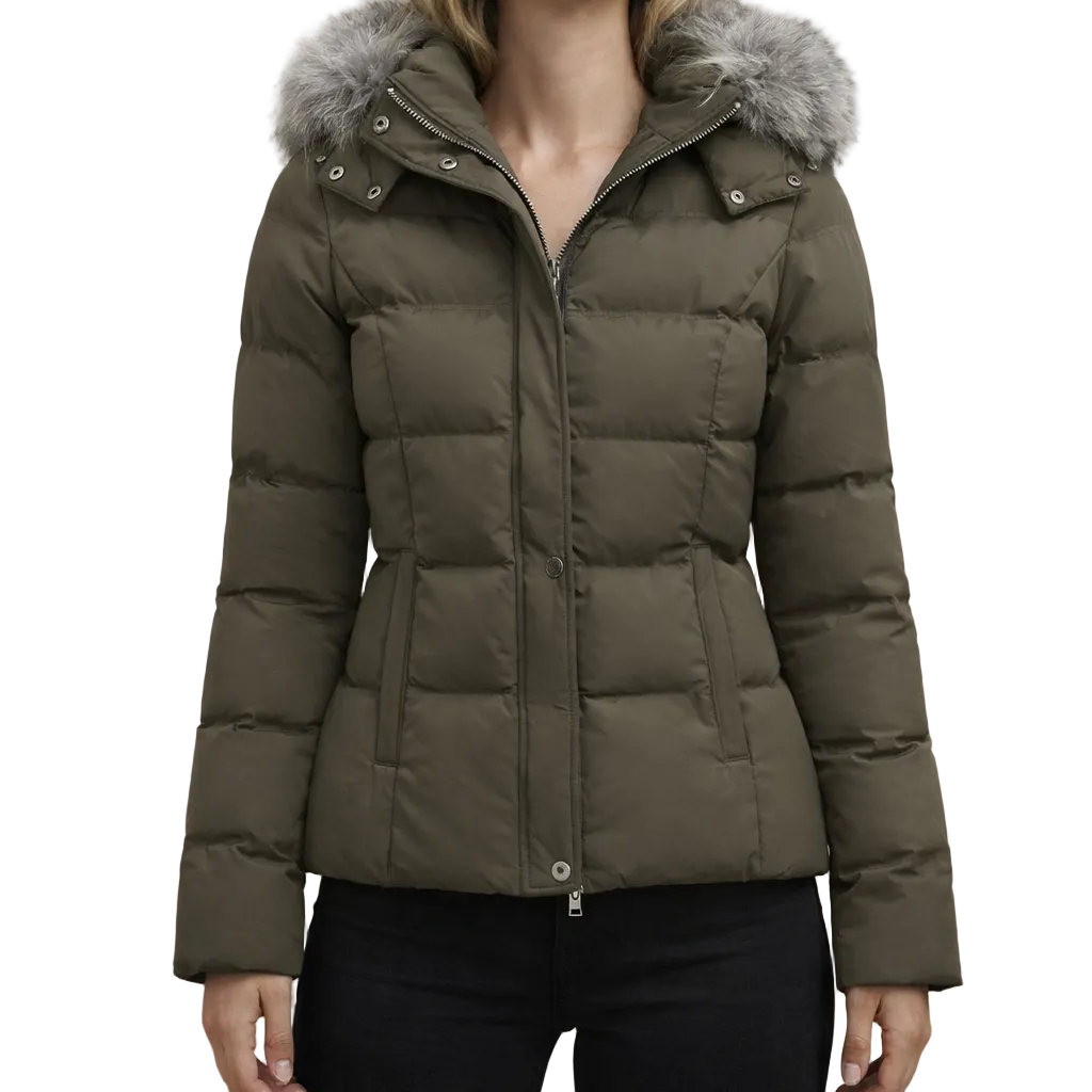 Women’s Hooded Padded Jacket with Faux Fur Trim