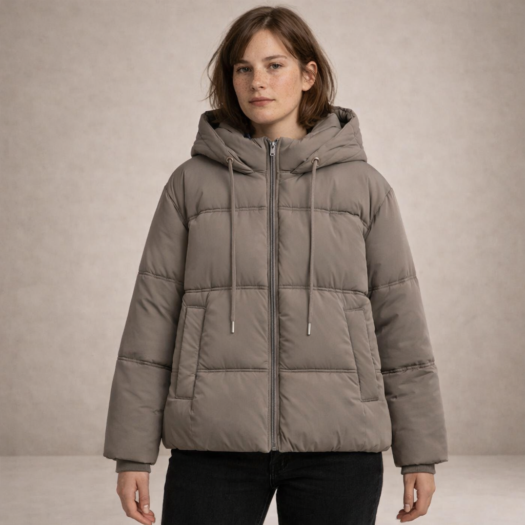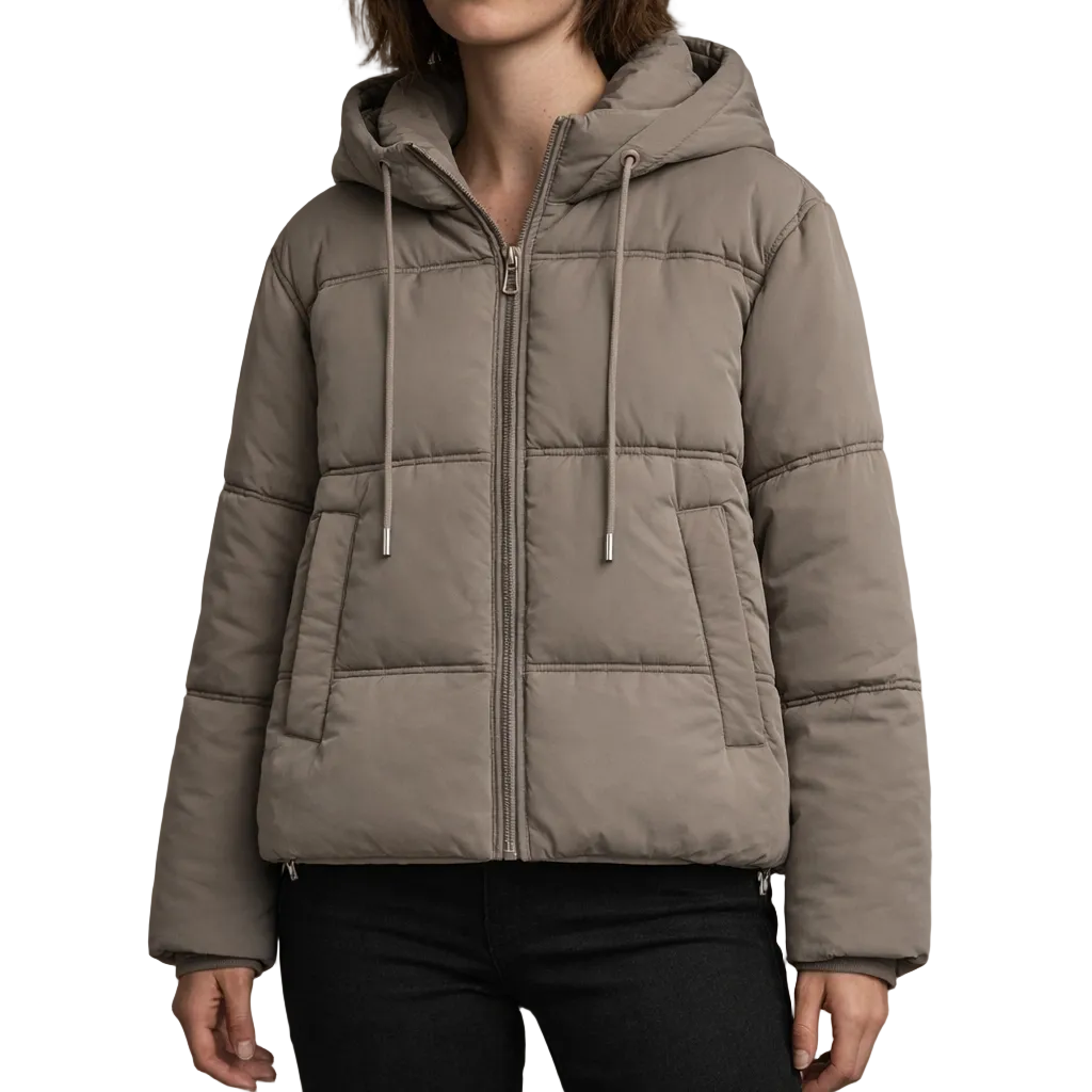 Designed for everyday warmth with a clean, modern finish, this Women’s Hooded Quilted Puffer Jacket offers practical comfort without compromising on style. The softly structured silhouette and neutral tone make it easy to pair with casual and smart-casual outfits alike. Ideal for cooler days, it provides reliable insulation in a streamlined design.