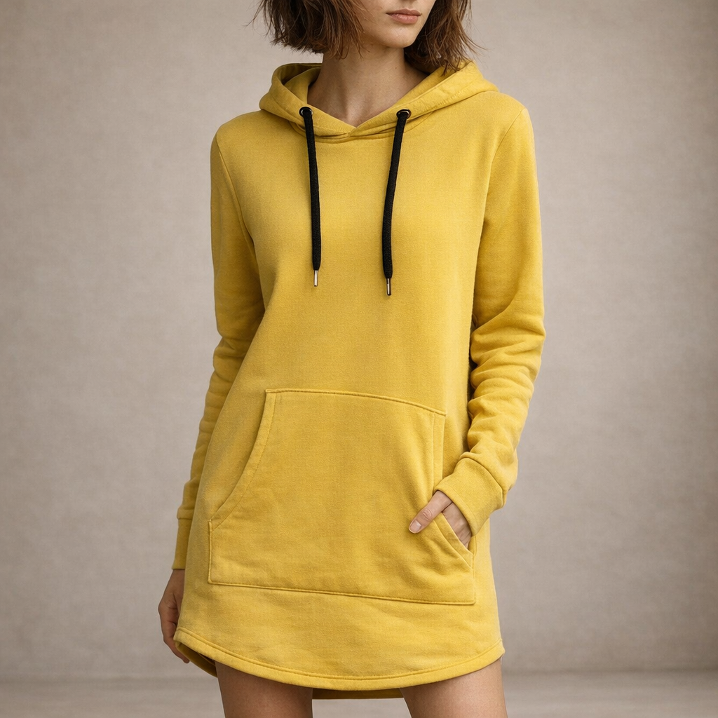 This soft casual hoodie dress delivers effortless comfort with a clean, modern silhouette, perfect for relaxed everyday wear. Designed for off-duty days, it blends laid-back style with practical detailing for easy, confident dressing.