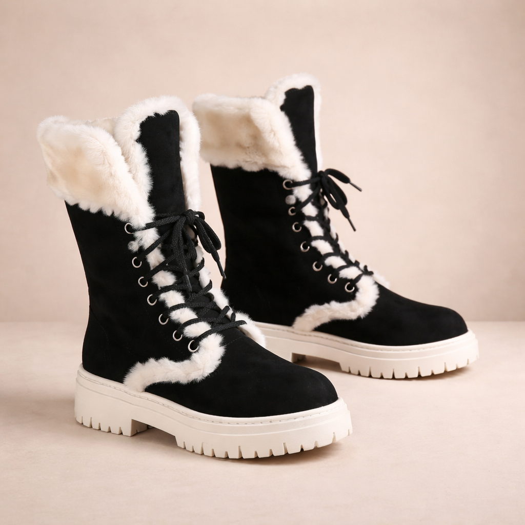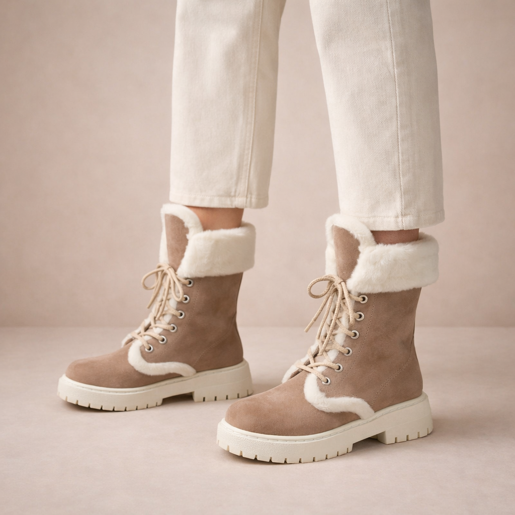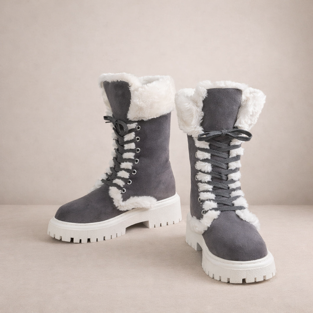 Design: Classic lace-up snow boot silhouette with soft faux-fur trim for a cosy, seasonal look