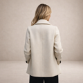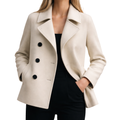 This women’s ivory short coat features a refined design with a modern, cropped silhouette. Crafted in a soft ivory tone, it offers a clean and elegant look that transitions effortlessly between smart and casual outfits. The structured shape and shorter length make it ideal for polished everyday wear.