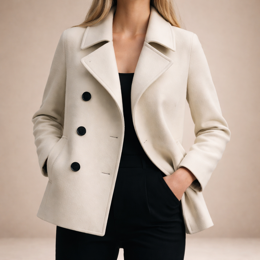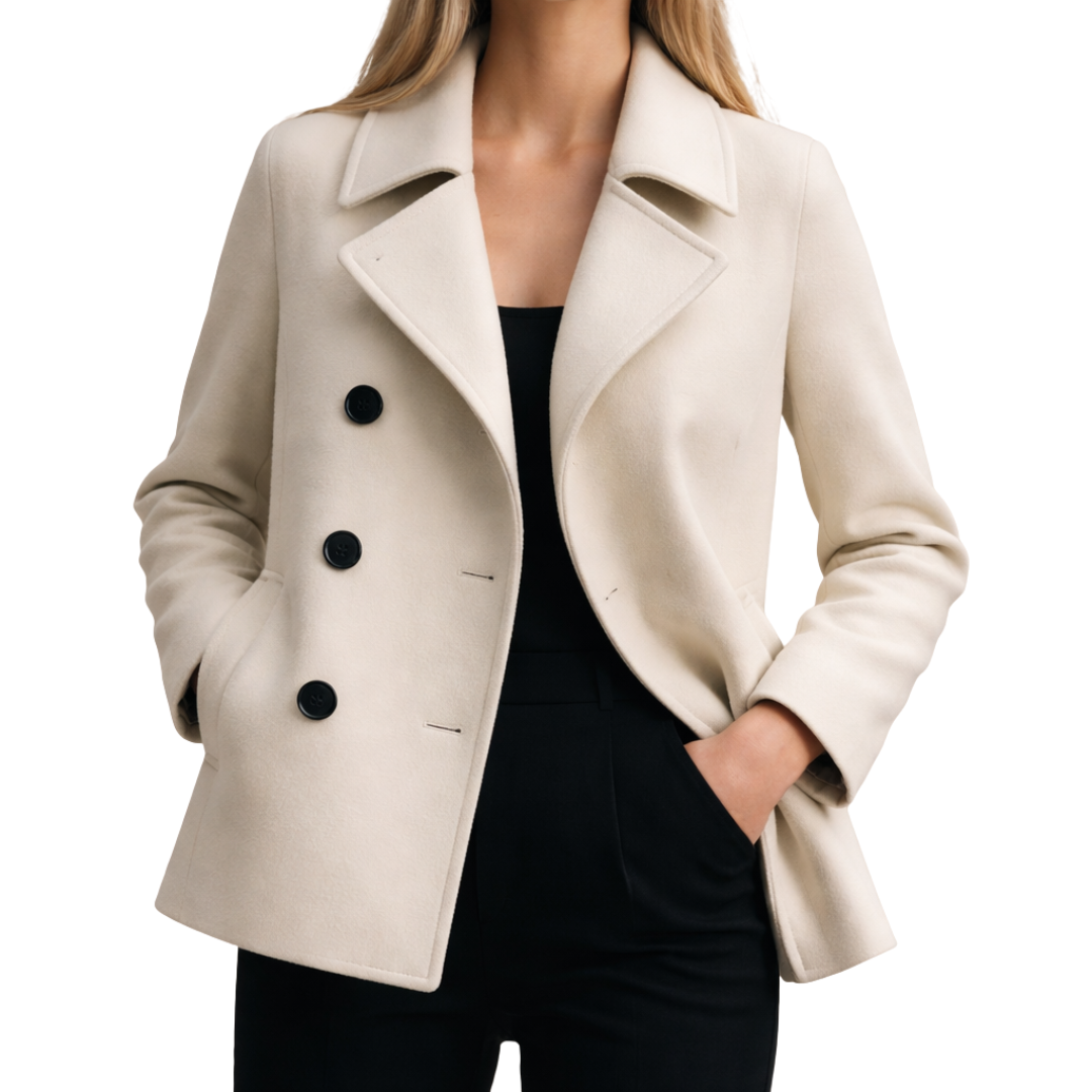 Key features of this Women’s Ivory Short Double-Breasted Coat