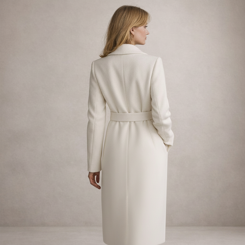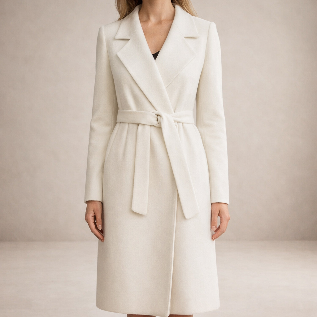 Women’s Ivory Wool-Blend Wrap Coat with Belt