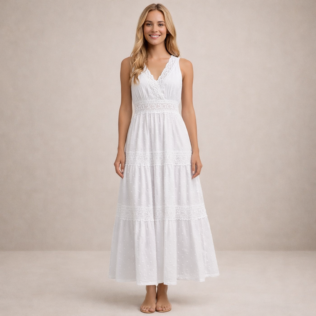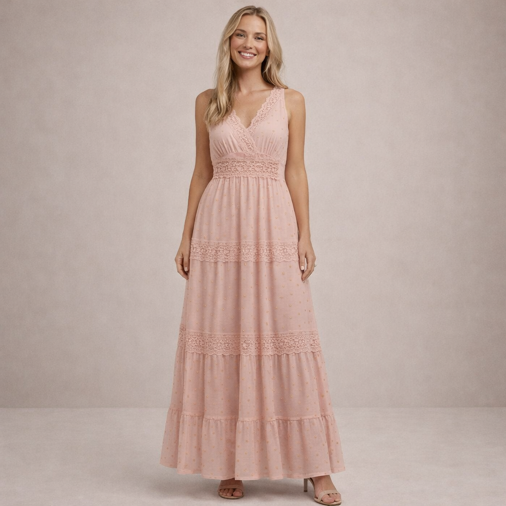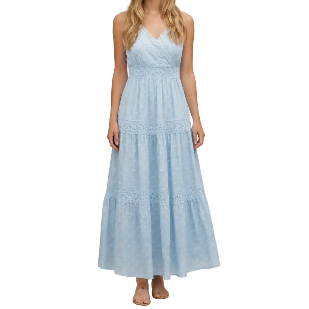Light, feminine and effortlessly graceful, this Women’s Lace Trim Maxi Summer Dress is designed for warm, sun-filled days. The flowing silhouette and delicate detailing create a romantic look that transitions beautifully from daytime outings to relaxed evening gatherings.