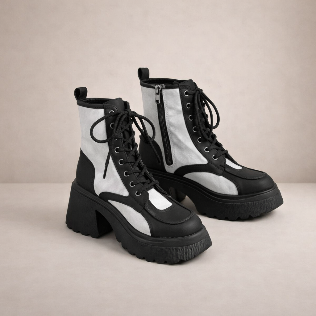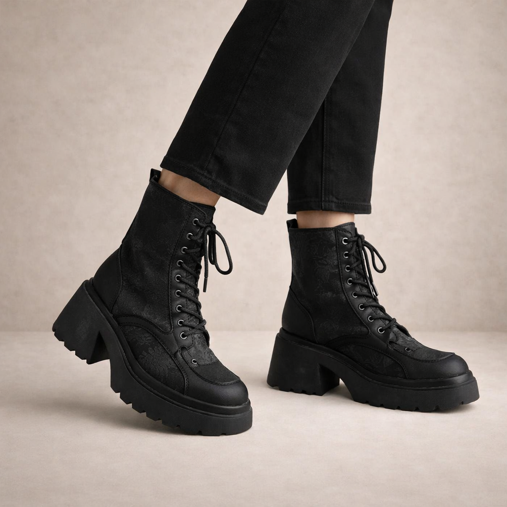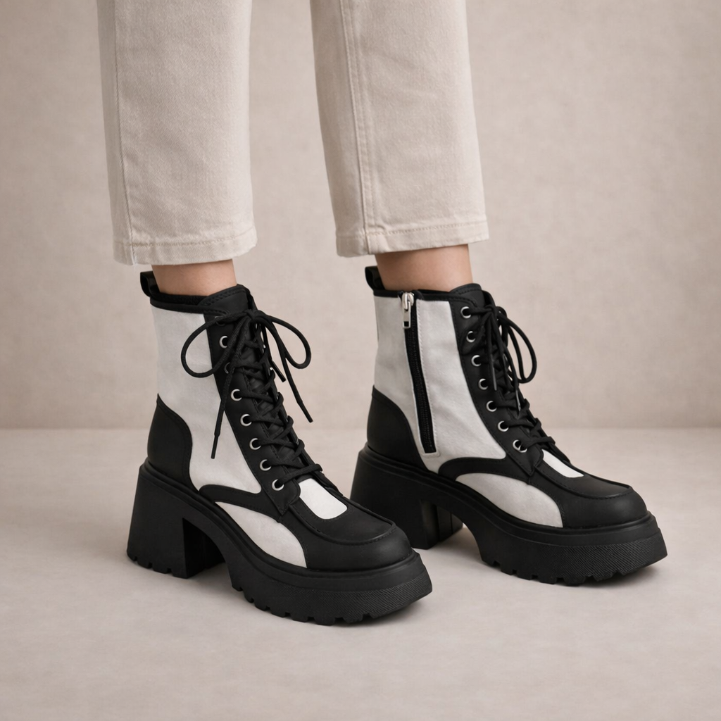 These women’s lace-up ankle boots make a bold style statement with a modern, confident edge. Combining a structured silhouette with a chunky heel, they are designed for everyday wear while adding character to both casual and dressed-up outfits.