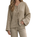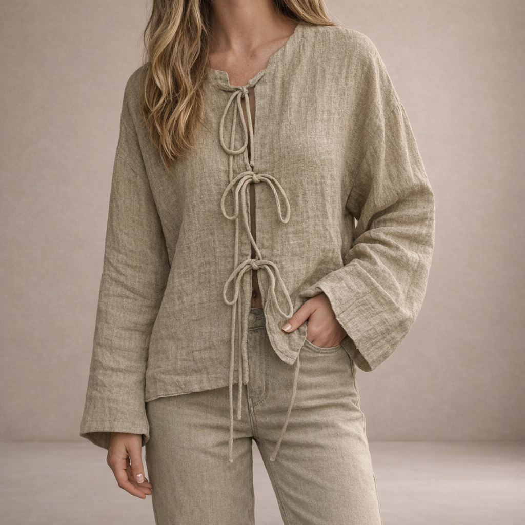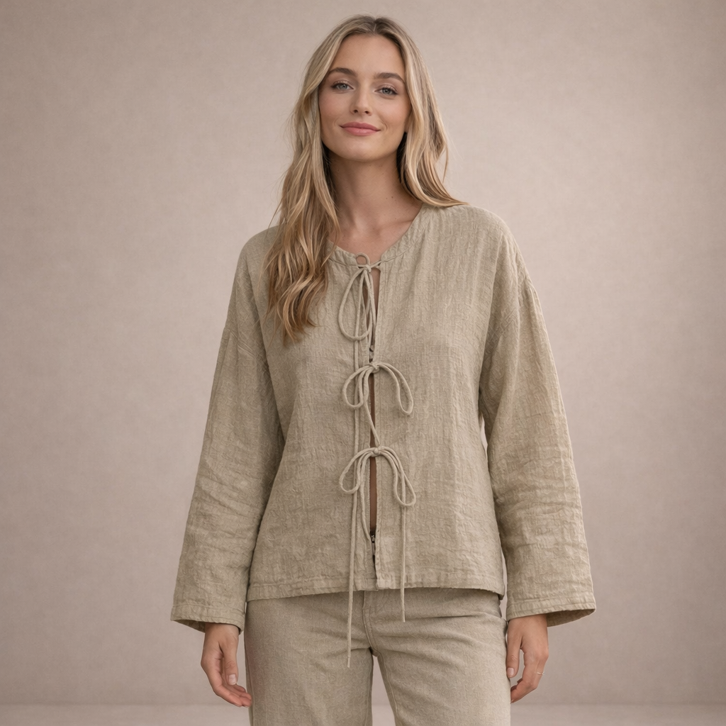 Women’s Linen Tie-Front Blouse with Relaxed Fit