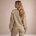Fabric: Lightweight linen-blend texture with a natural, breathable feel against the skin