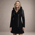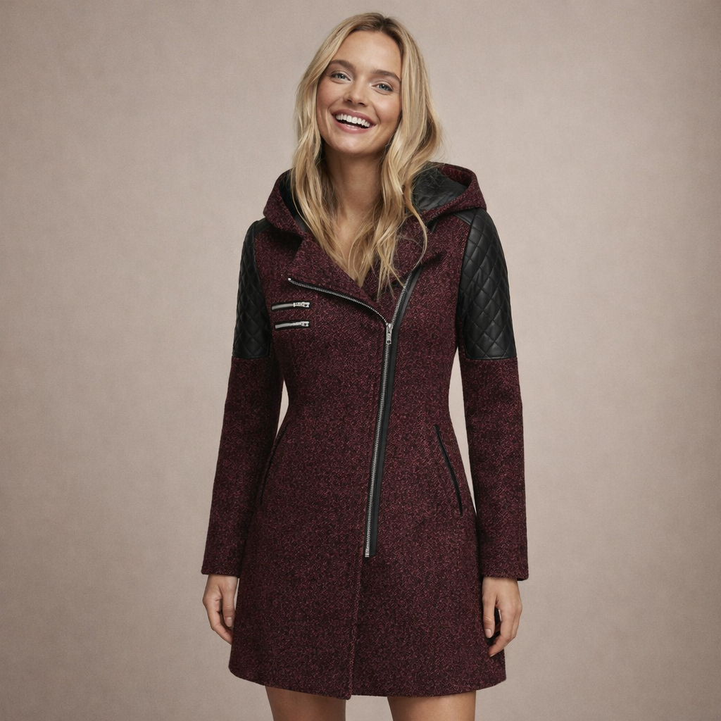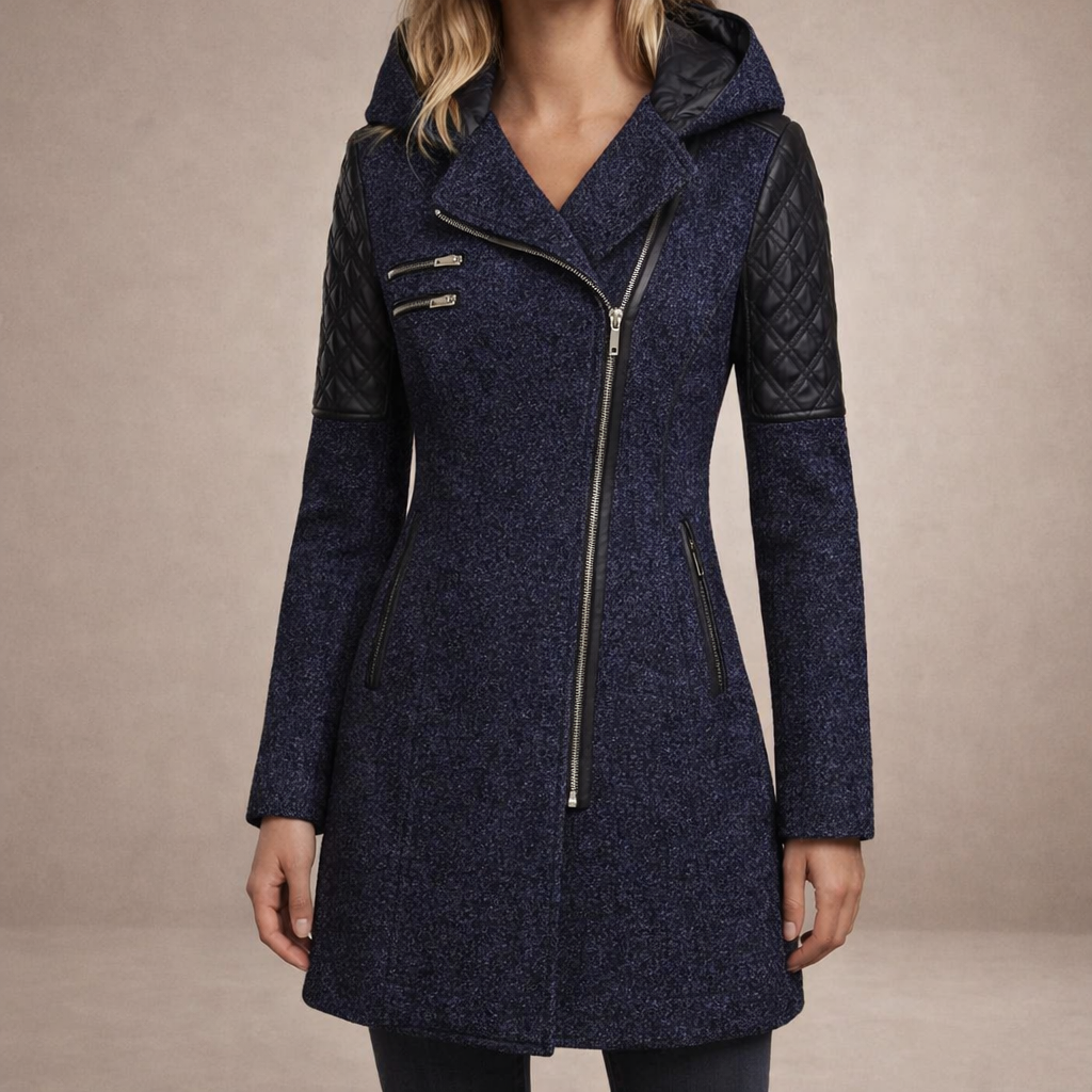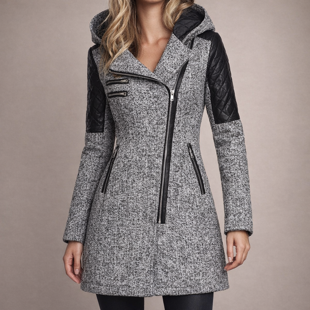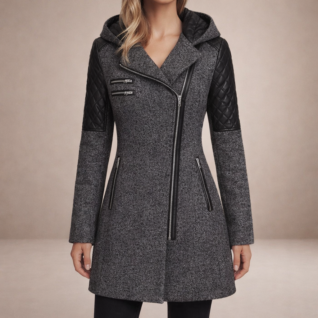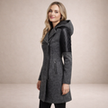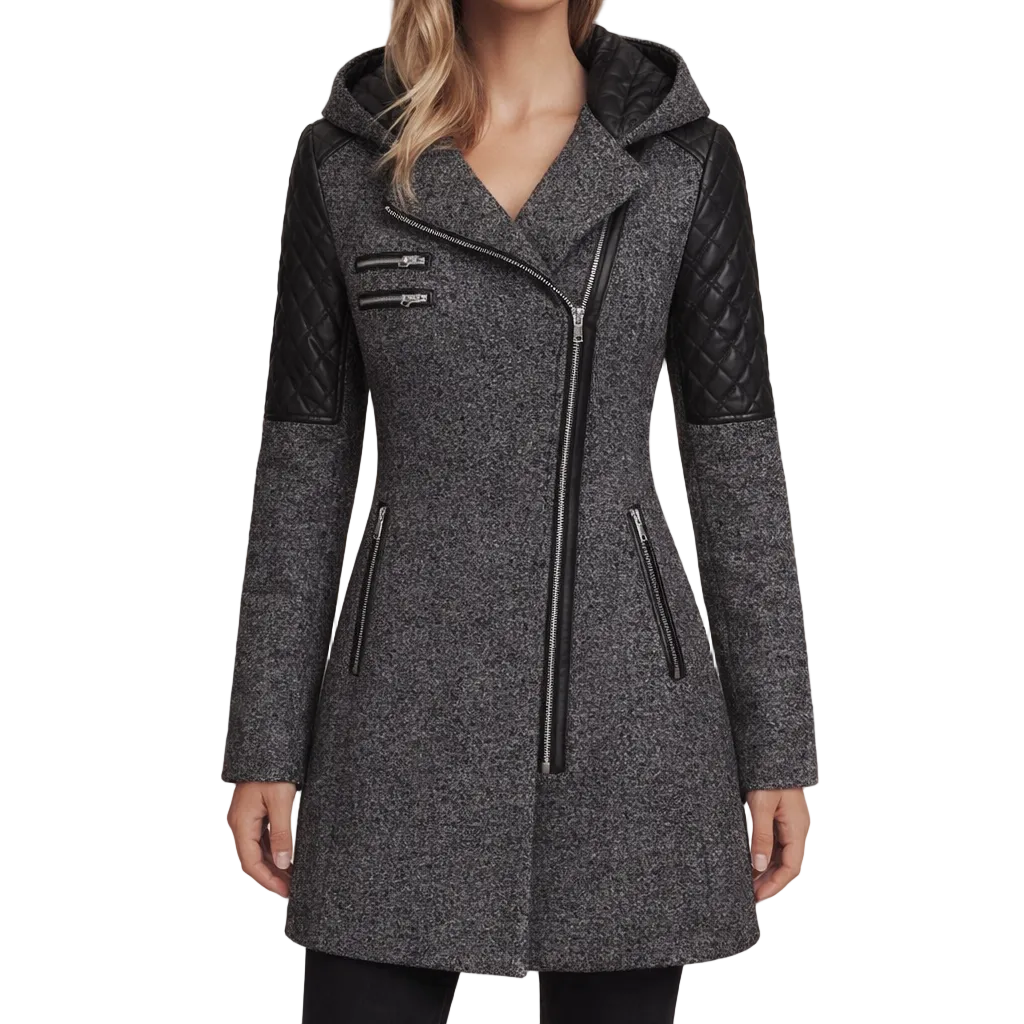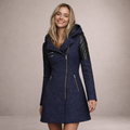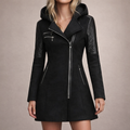 Women’s Long Hooded Coat with Asymmetric Zip