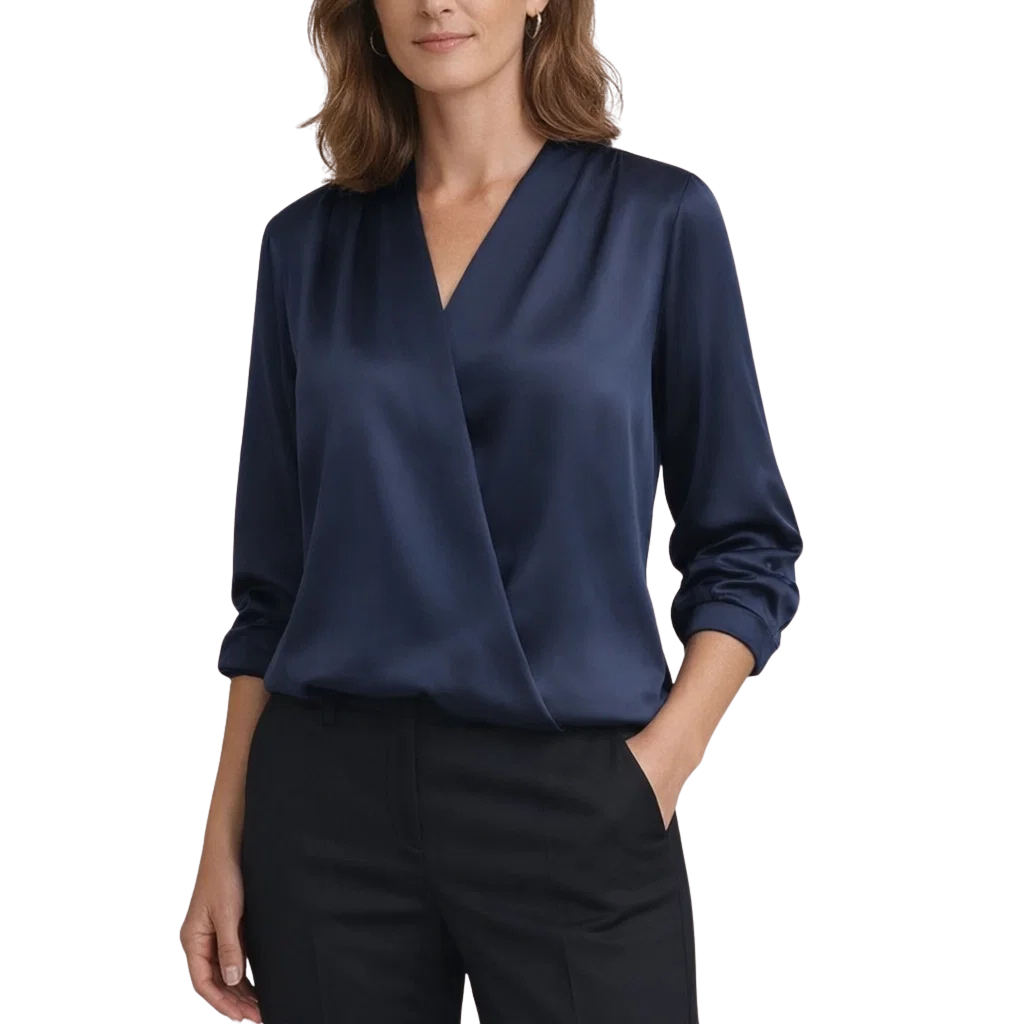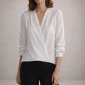 Women’s Long Sleeve Blouse with V-Neck Wrap Front