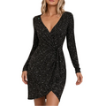 Women’s Long Sleeve Wrap Dress with V-Neck and Glitter Finis