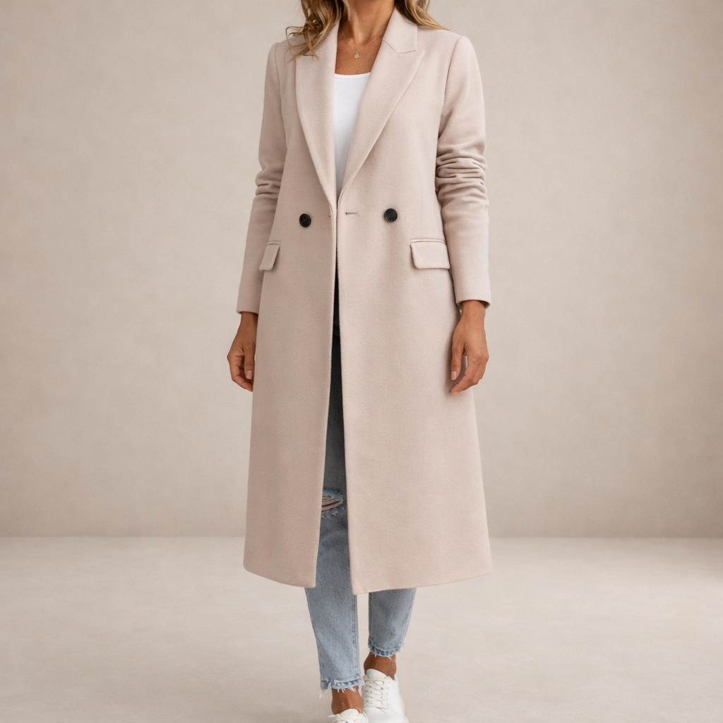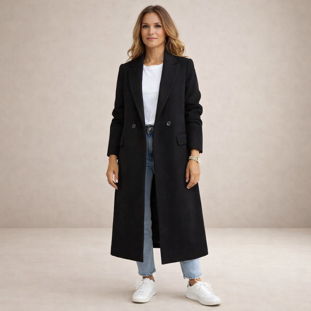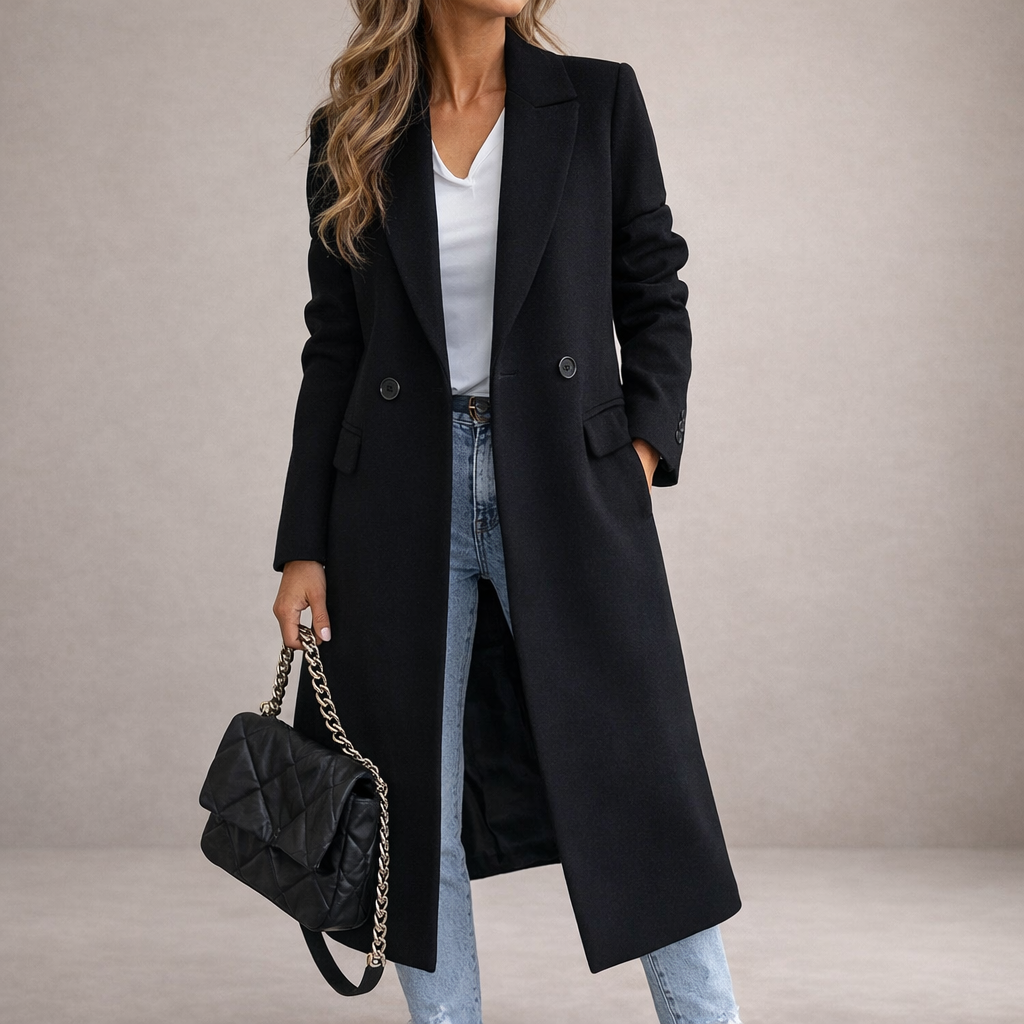 Women’s Long Tailored Coat with Double-Breasted Buttons