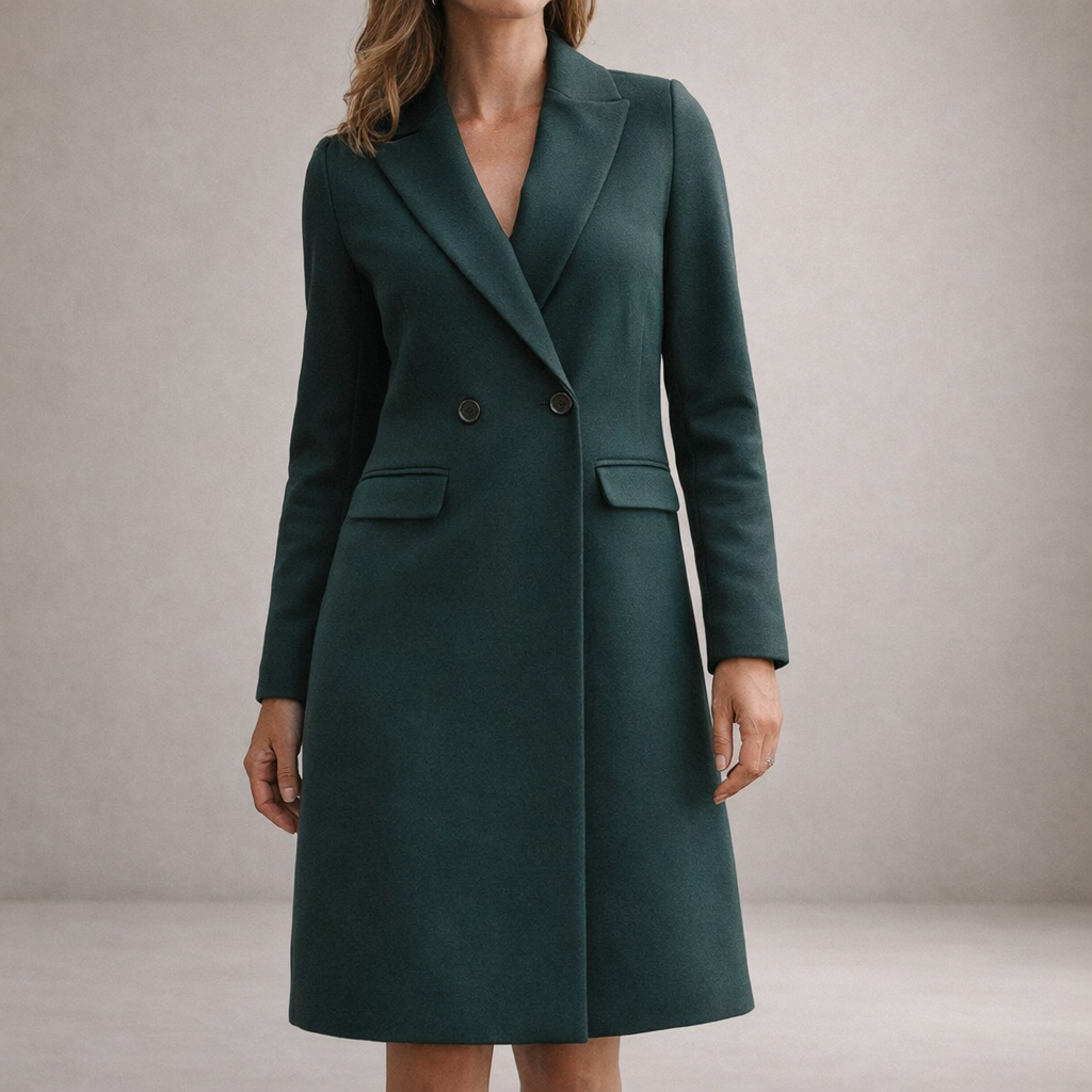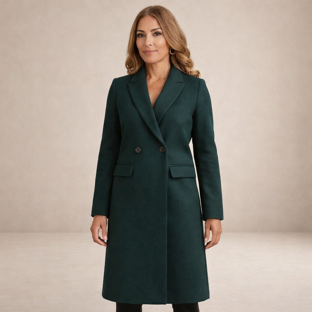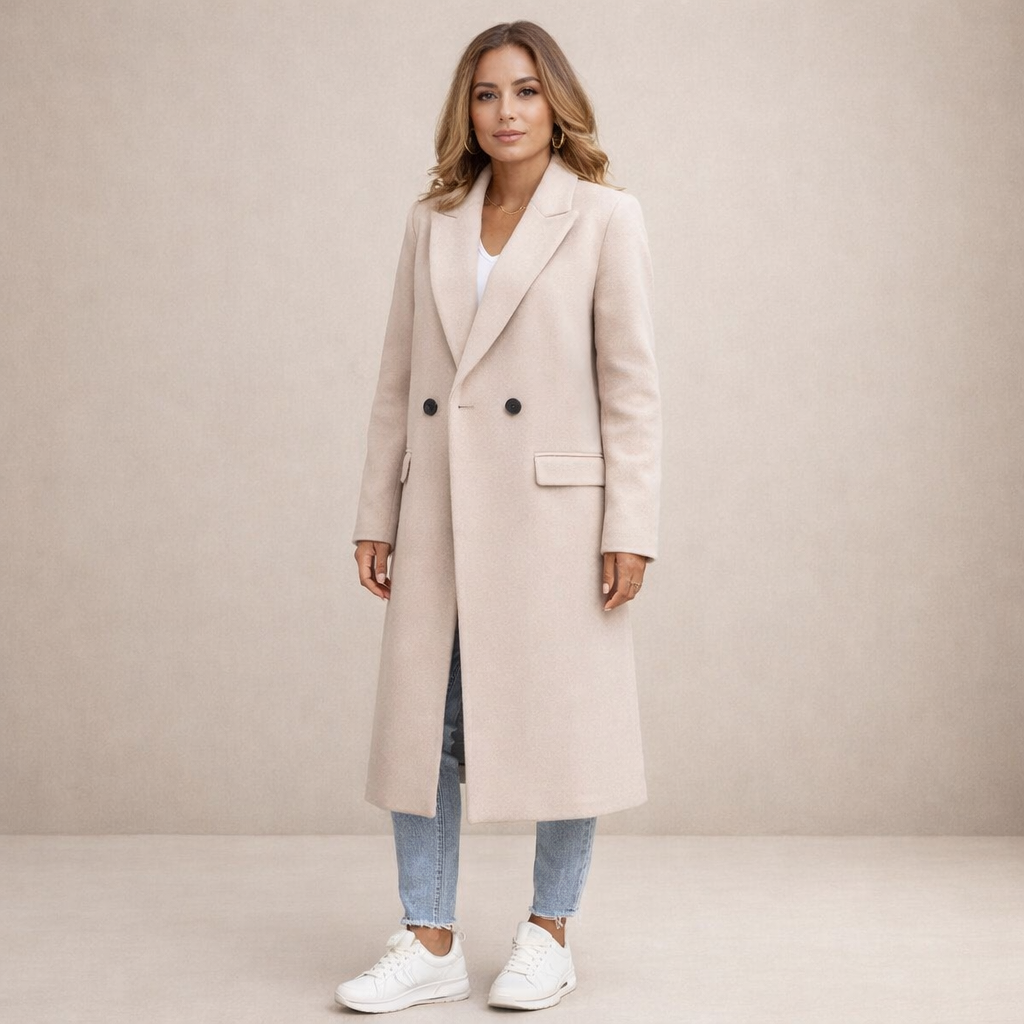 Women’s Long Tailored Coat with Double-Breasted Buttons
