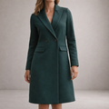 Design: Clean, structured longline design with classic lapels for a timeless and elegant appearance.