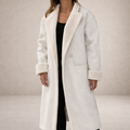 Refined and softly structured, this women’s long coat offers a clean silhouette with a cosy finish. The neutral tone and plush lining create a polished yet comfortable layer, ideal for cooler days in the city or relaxed weekend outings. Easy to style over both casual and tailored looks, it brings understated elegance to seasonal dressing.