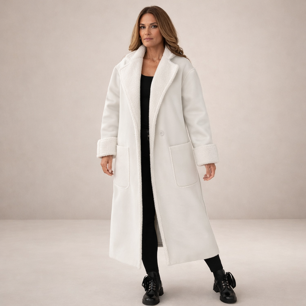 Key features of this Women’s Long Sherpa-Lined Coat in Cream