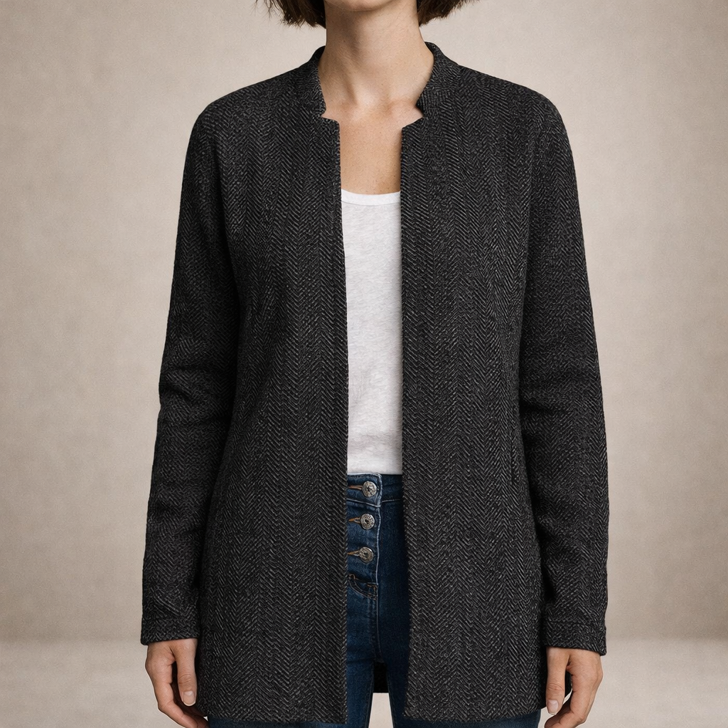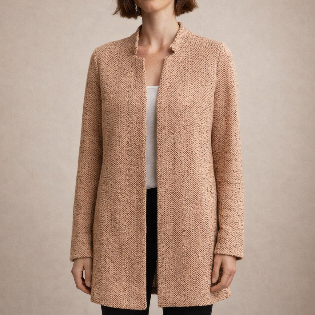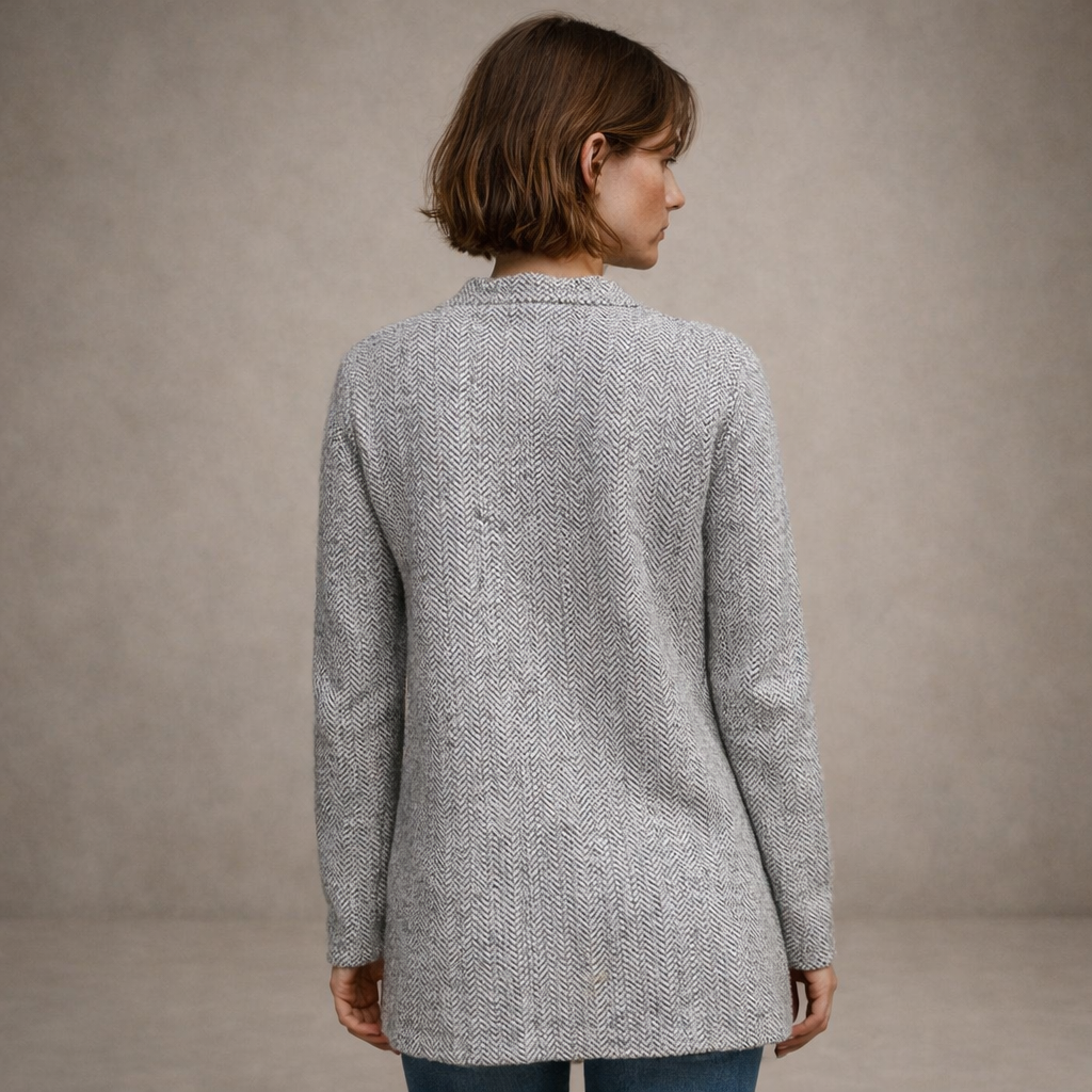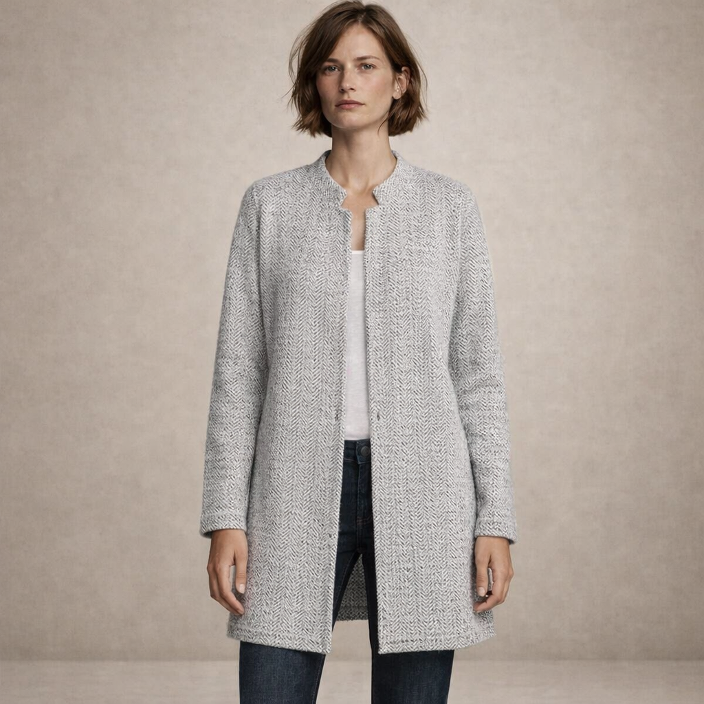 Timeless and effortlessly polished, this Women’s Herringbone Longline Cardigan is a refined layering piece for the cooler seasons. The classic woven texture and clean silhouette make it ideal for elevating everyday outfits with understated sophistication.