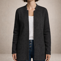 Details: Open-front design with neatly finished edges and long sleeves for a streamlined look