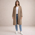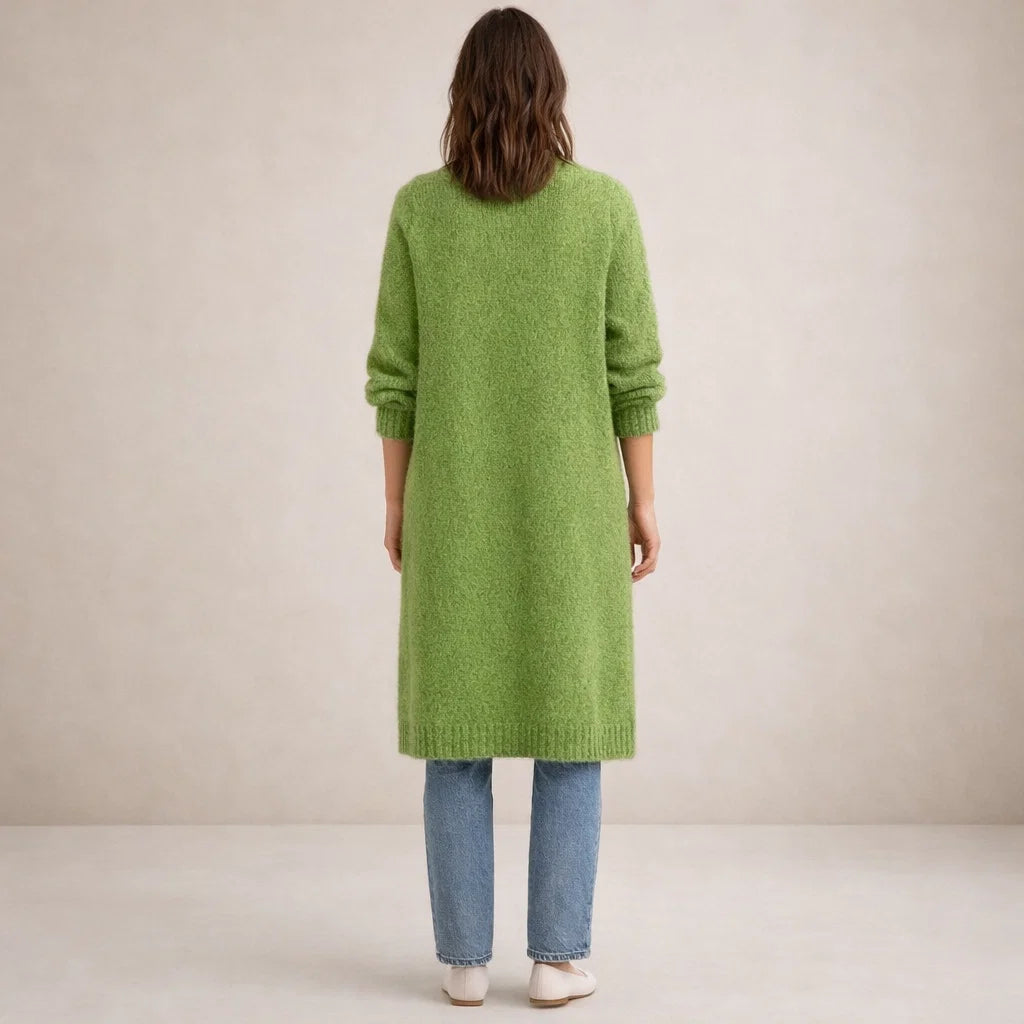 Design: Open-front longline silhouette in a soft green shade, offering a clean and contemporary finish