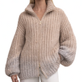 Design: A chunky ribbed knit with a high collar and full zip front that creates a modern, softly structured appearance.