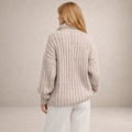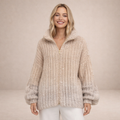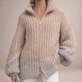 This women’s zip-up knitted jumper offers a soft, luxurious look with a relaxed yet refined silhouette. Designed for comfort with subtle texture, it’s perfect for cosy daytime wear, relaxed evenings or elegant layering in cooler seasons.