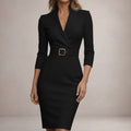 Women’s Midi Dress with V-Neck Wrap Front and Belted Waist