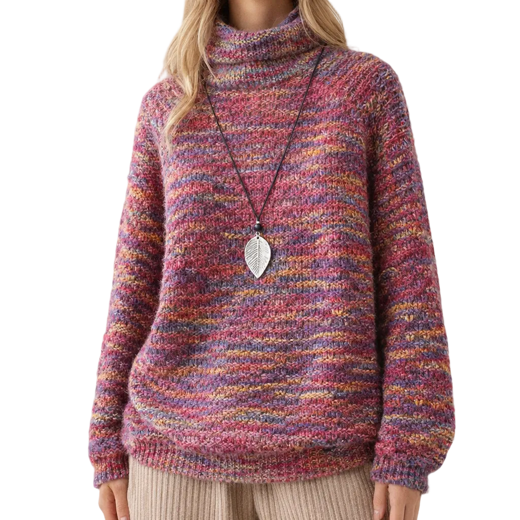 Women’s Multicolour Ribbed Knit Jumper with Roll Neck