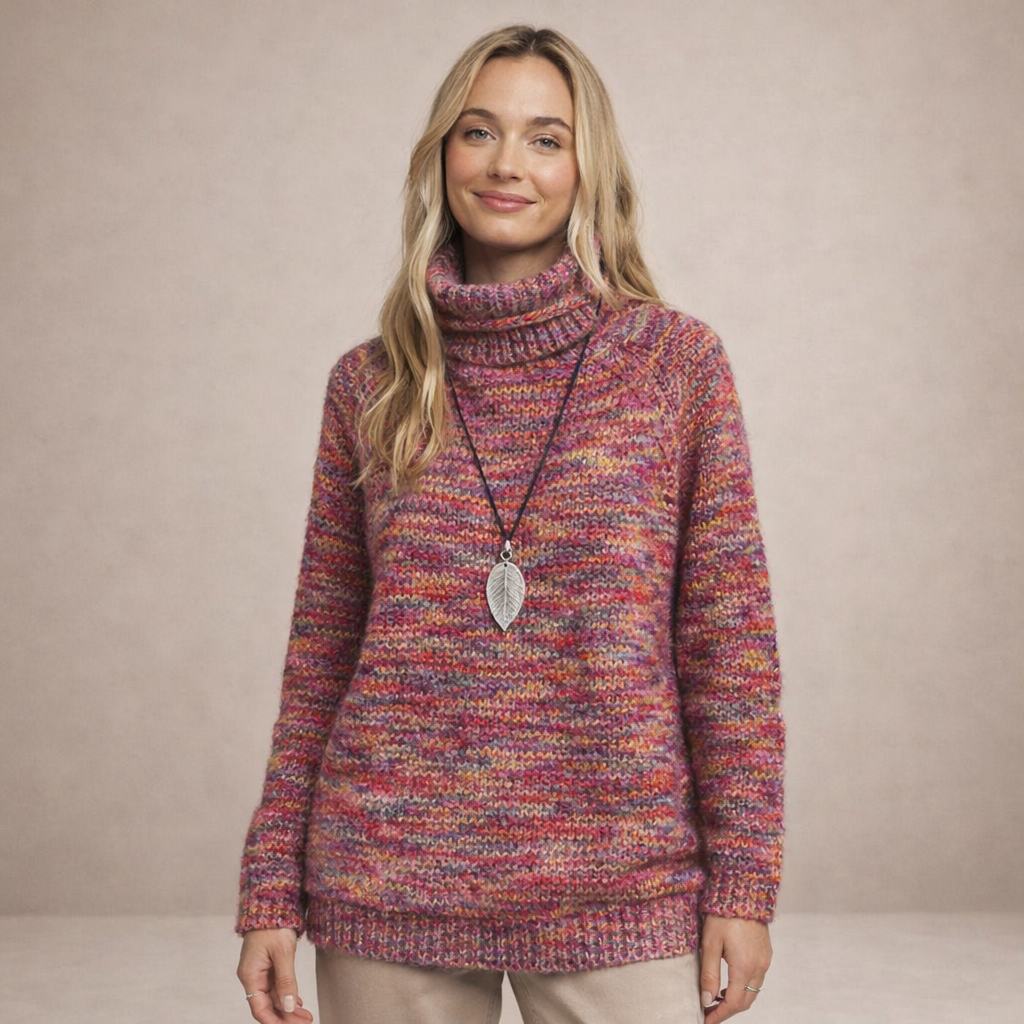 Rich in colour and softly textured, this Women’s Multicolour Knit Turtleneck Jumper brings warmth and character to seasonal dressing. The blended tones create a vibrant yet wearable look, perfect for brightening cooler days. Cosy and easy to style, it pairs comfort with an effortlessly modern feel.
