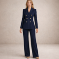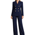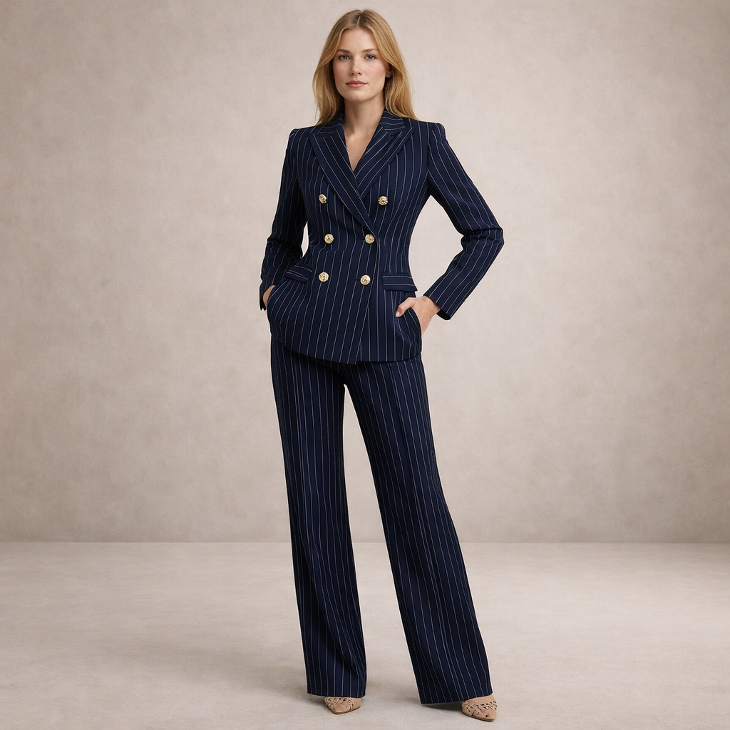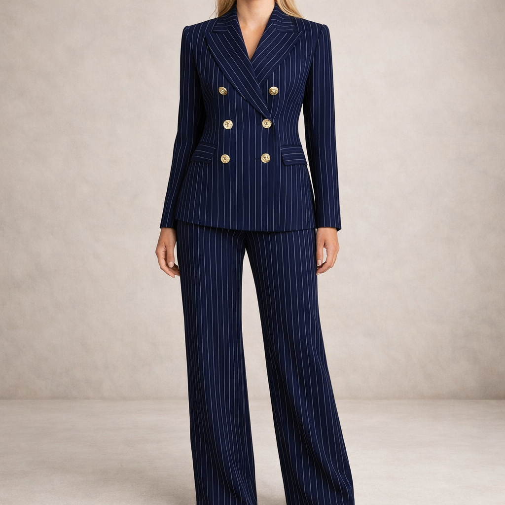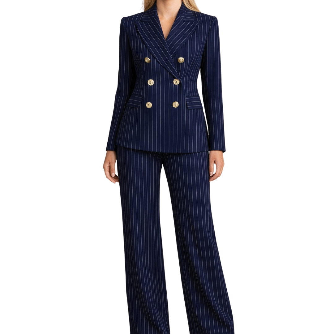 Women’s Navy Pinstripe Double-Breasted Suit with Gold Buttons