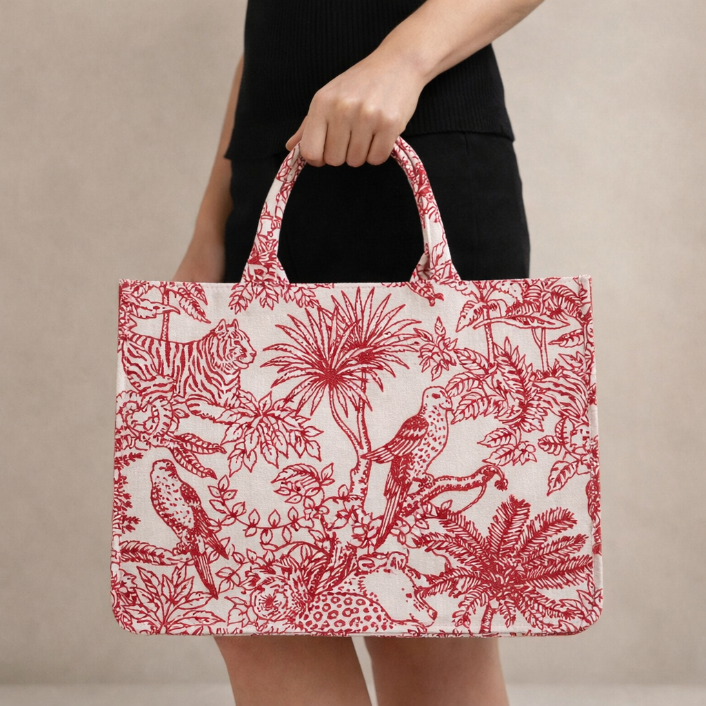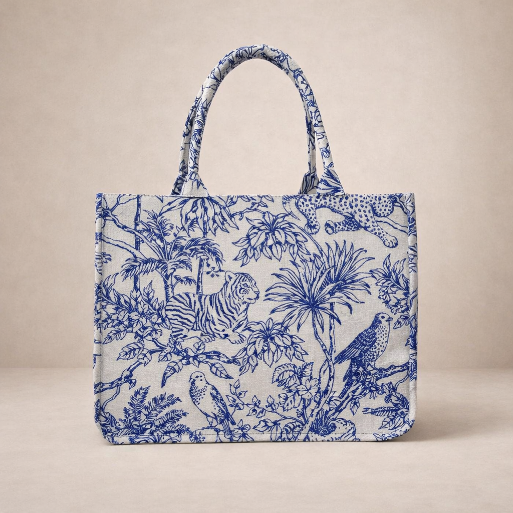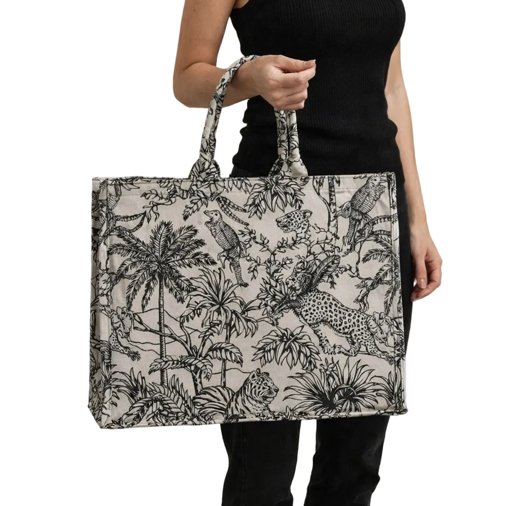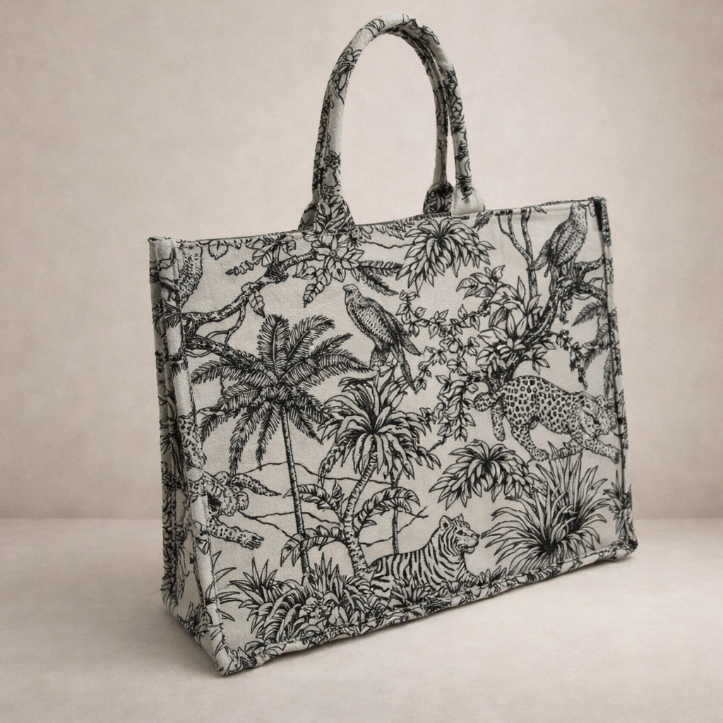 Women’s Oversized Canvas Tote Bag with Jungle Print