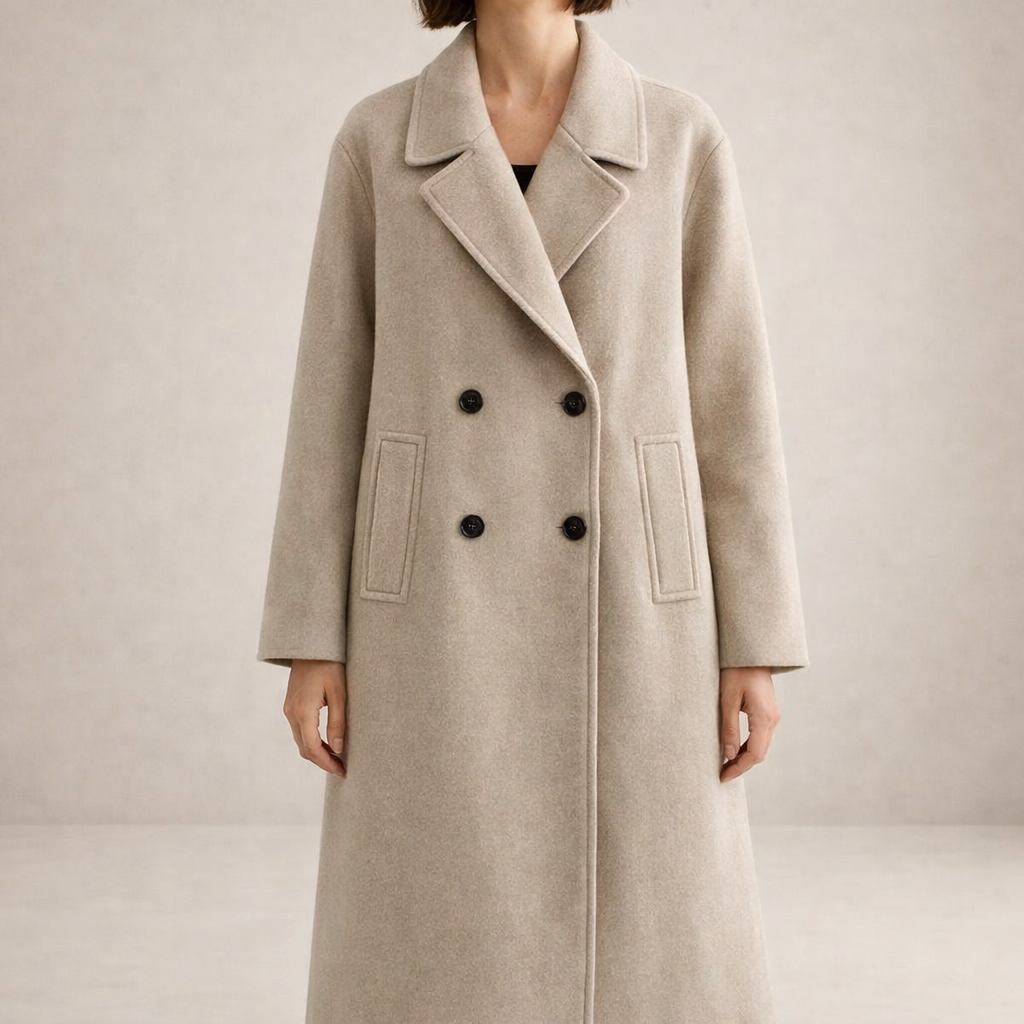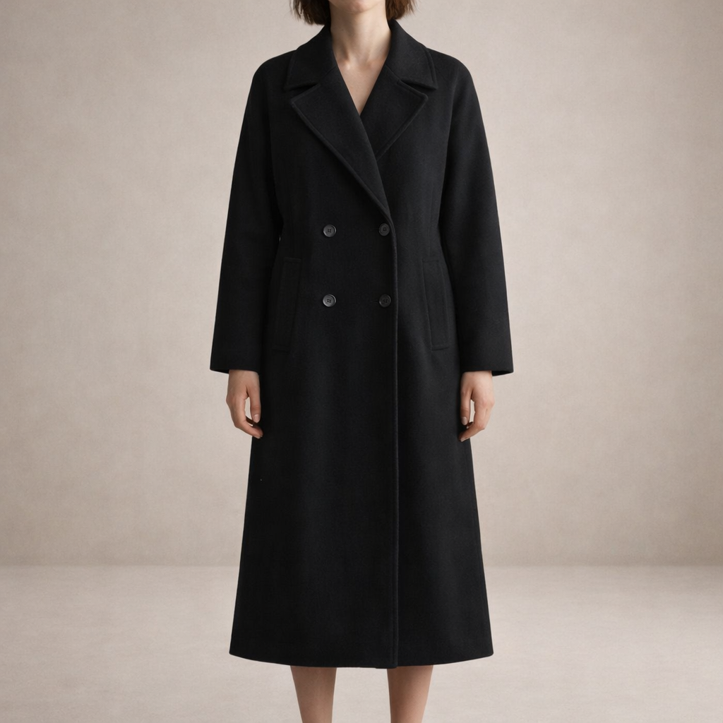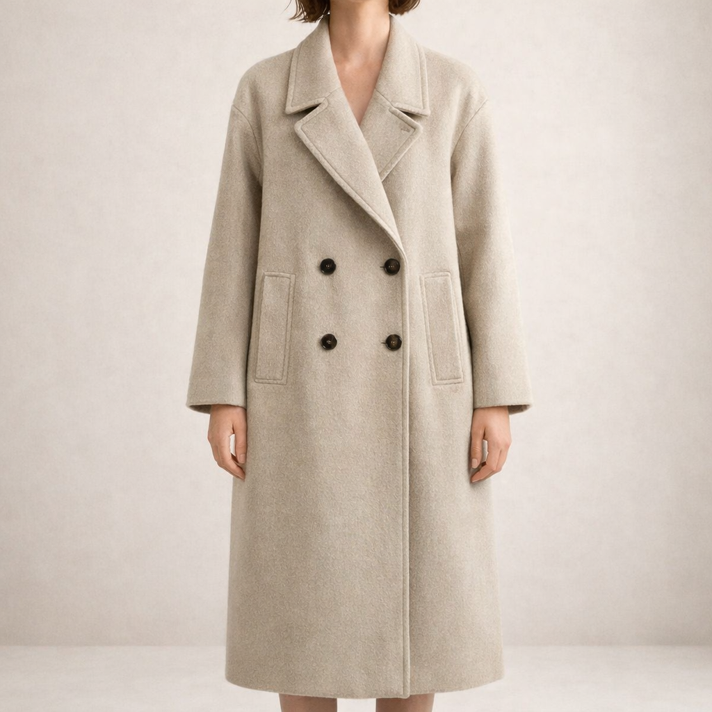 Key features of this Women’s Double-Breasted Longline Wool-Blend Coat
