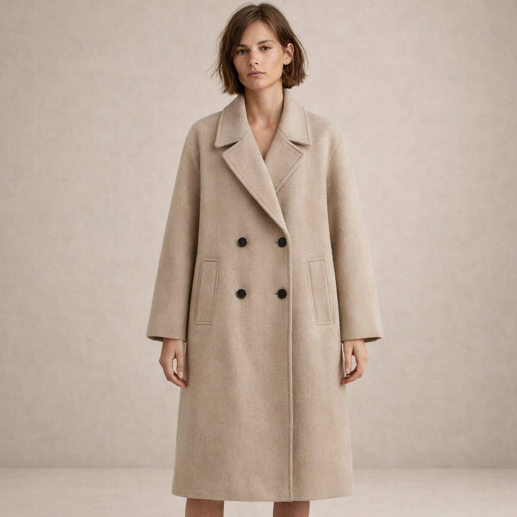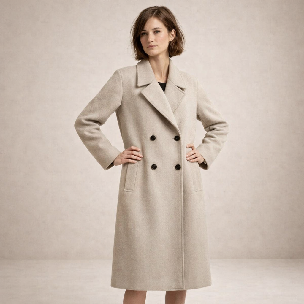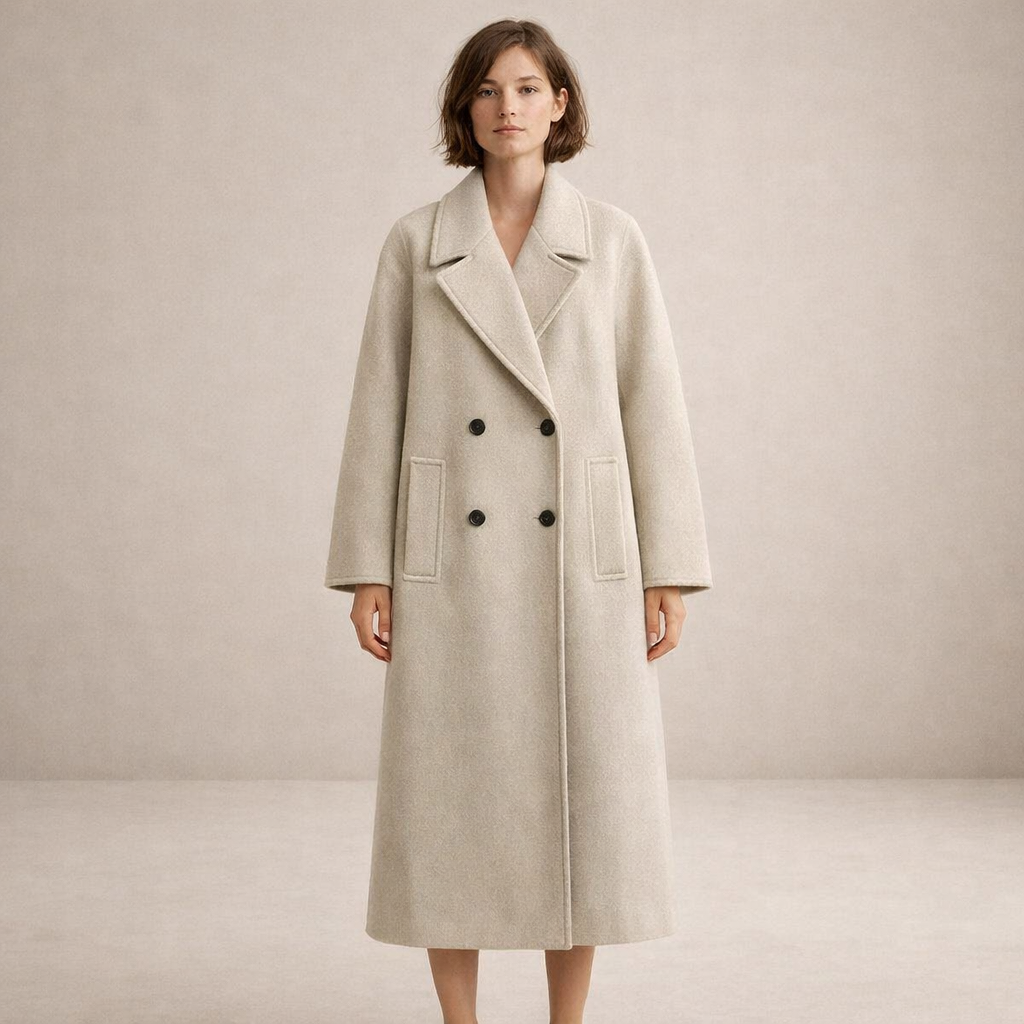 Timeless and effortlessly refined, this Women’s Double-Breasted Longline Wool-Blend Coat offers a polished outerwear option for colder days. Its clean structure and soft neutral tone make it a versatile layering piece for both tailored and casual ensembles, delivering warmth with understated elegance.