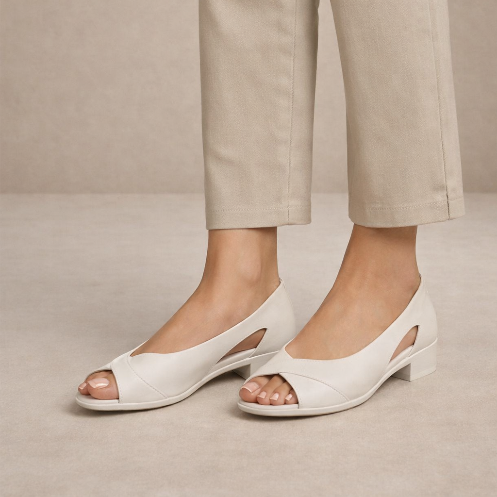 Clean and contemporary, these Women’s Peep-Toe Cut-Out Ballet Flats offer a refined balance of elegance and everyday comfort. The minimalist silhouette and soft neutral tone make them easy to style across seasons, from workwear to relaxed weekend looks. Subtle design details add modern appeal while maintaining a timeless finish.